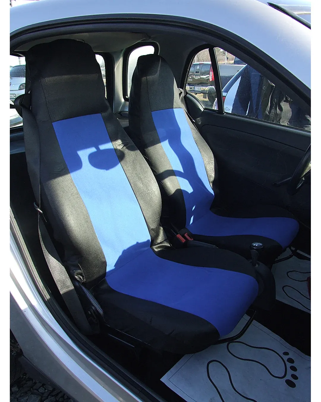 1+1 Калъфи за предни седалки, тапицерия за автомобил Smart Fortwo Смарт Форту, текстил синьо-черно