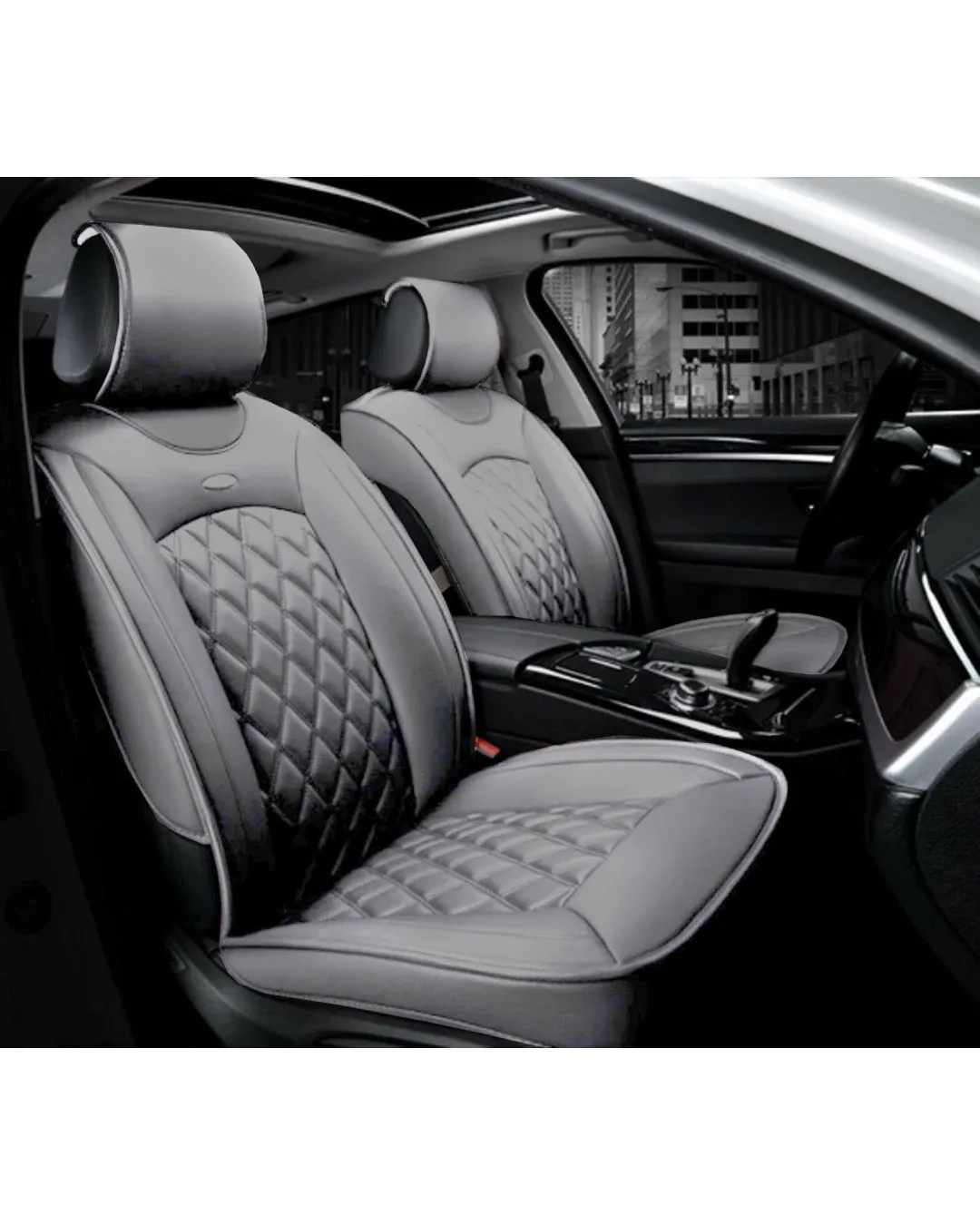 1+1 Комплект от 2 бр. Универсална Кожена Тапицерия Сиви Калъфи За Предни Седалки Сиво