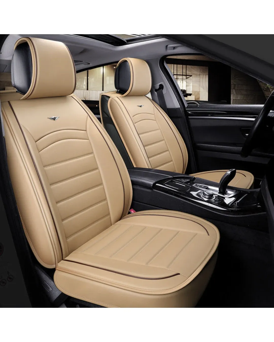 1+1 Комплект от 2 броя Универсална Кожена Тапицерия Калъфи За Предни Седалки Бежови Бежово