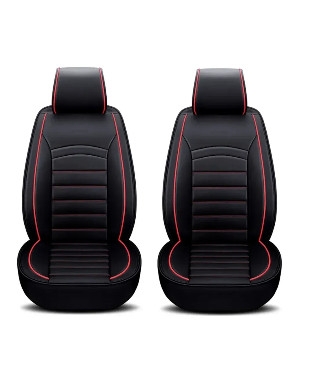 1 + 1 Комплект от 2 броя Универсална Кожена Тапицерия Калъфи за предни седалки Черно и Червено