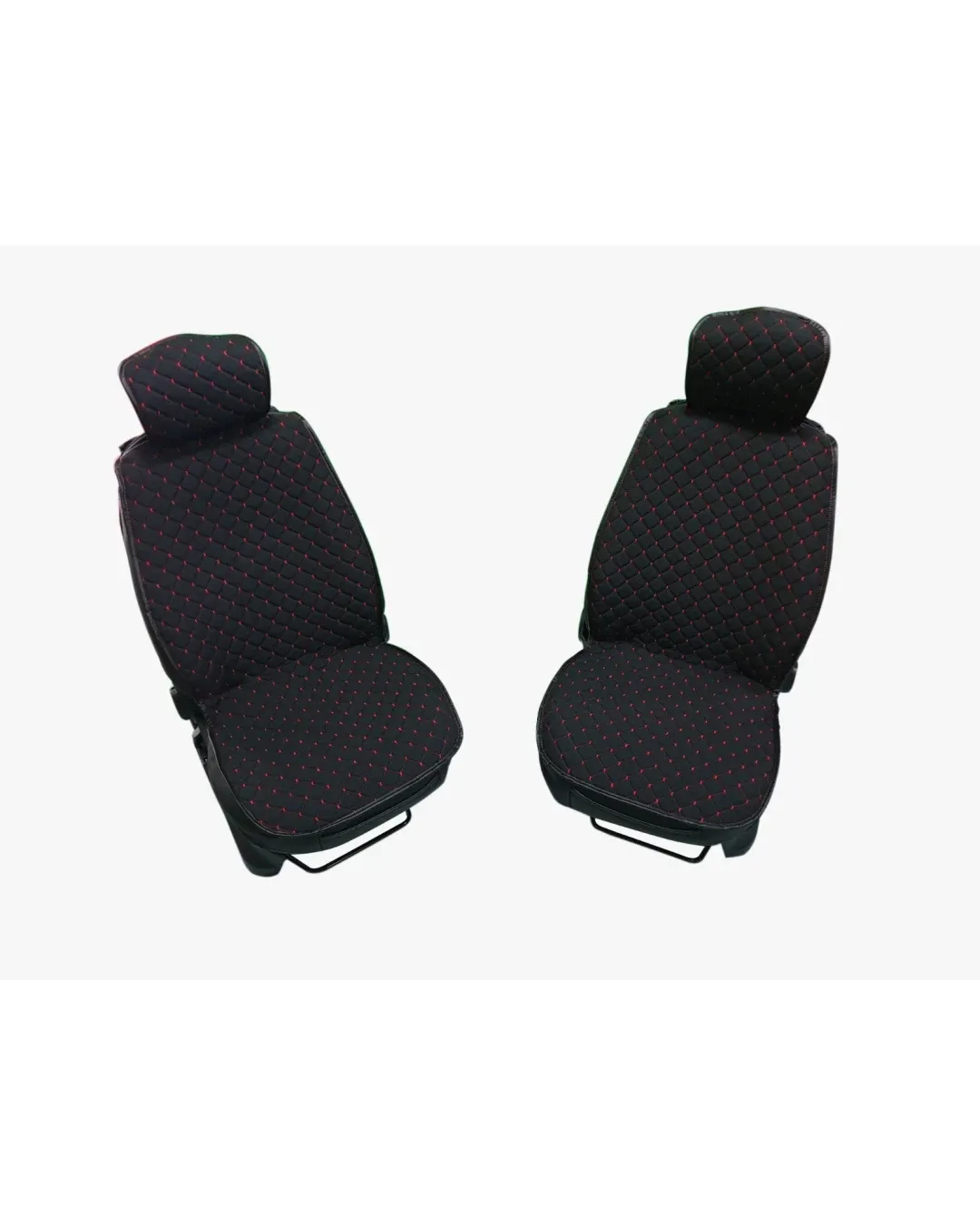 1+1 комплект плътни текстилени калъфи / тапицерия за седалки - черни с червен конец