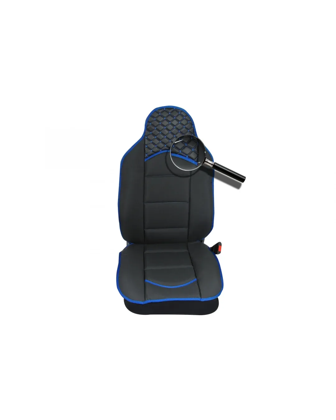 1+1 Комплект универсални калъфи тип масажор за предни седалки - черно със син конец - Еко Кожа и Текстил