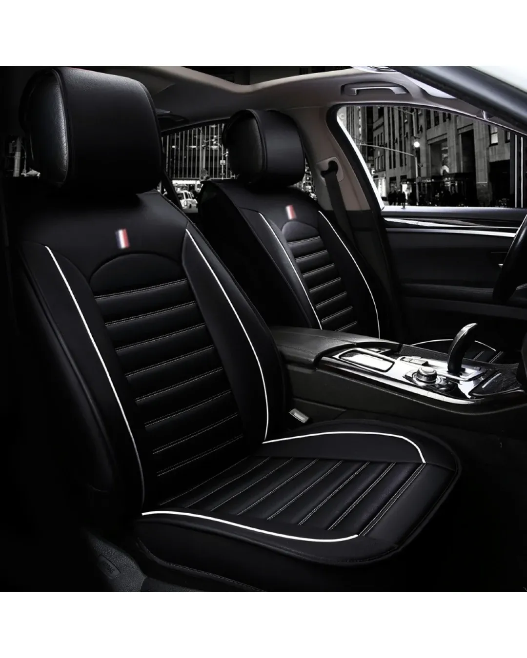 Луксозна тапицерия Изработена от висококачествена PU еко кожа и мека пяна, осигуряващи удобно чувство при сядане. Ръчно шита. Универсален дизайн, подходящ за всички автомобили. Дизайн, съвместим с airbag - въздушни възглавници. Устойчивост на износване, добър водоустойчив ефект и силна огнезащитна способност. Лесна инсталация. Цялостен дизайн, покрива предната и задната част на седалката. За една предна седалка