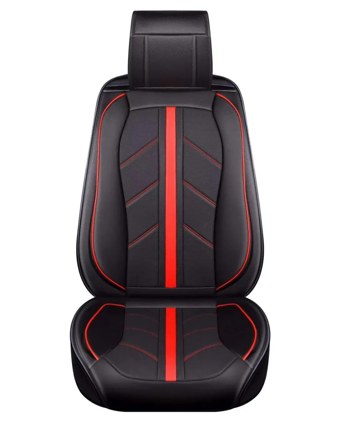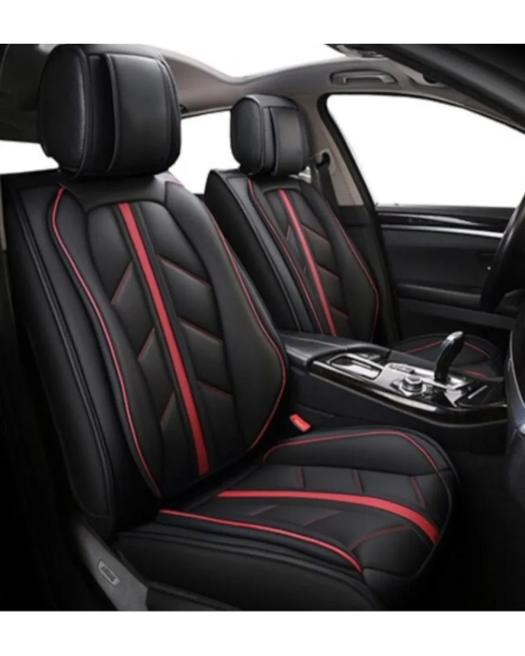 Луксозна тапицерия Изработена от висококачествена PU еко кожа и мека пяна, осигуряващи удобно чувство при сядане. Ръчно шита. Универсален дизайн, подходящ за всички автомобили. Дизайн, съвместим с airbag - въздушни възглавници. Устойчивост на износване, добър водоустойчив ефект и силна огнезащитна способност. Лесна инсталация. Цялостен дизайн, покрива предната и задната част на седалката. За една предна седалка