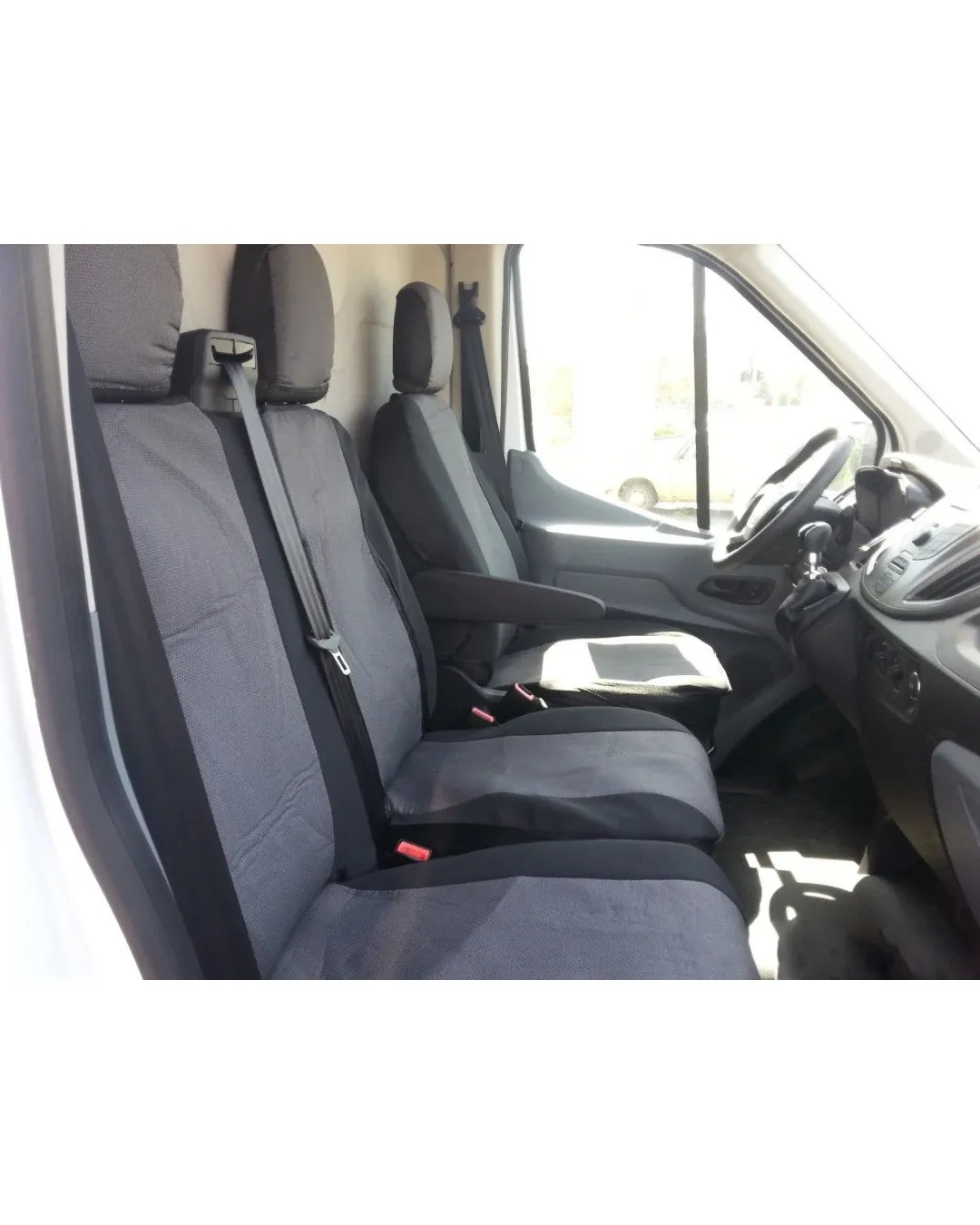 2+1 комплект калъфи / тапицерия - специално ушити за Ford Transit 2013+ - пасват перфектно - с отвор за барчето на седалка - LUXE черно-сиво