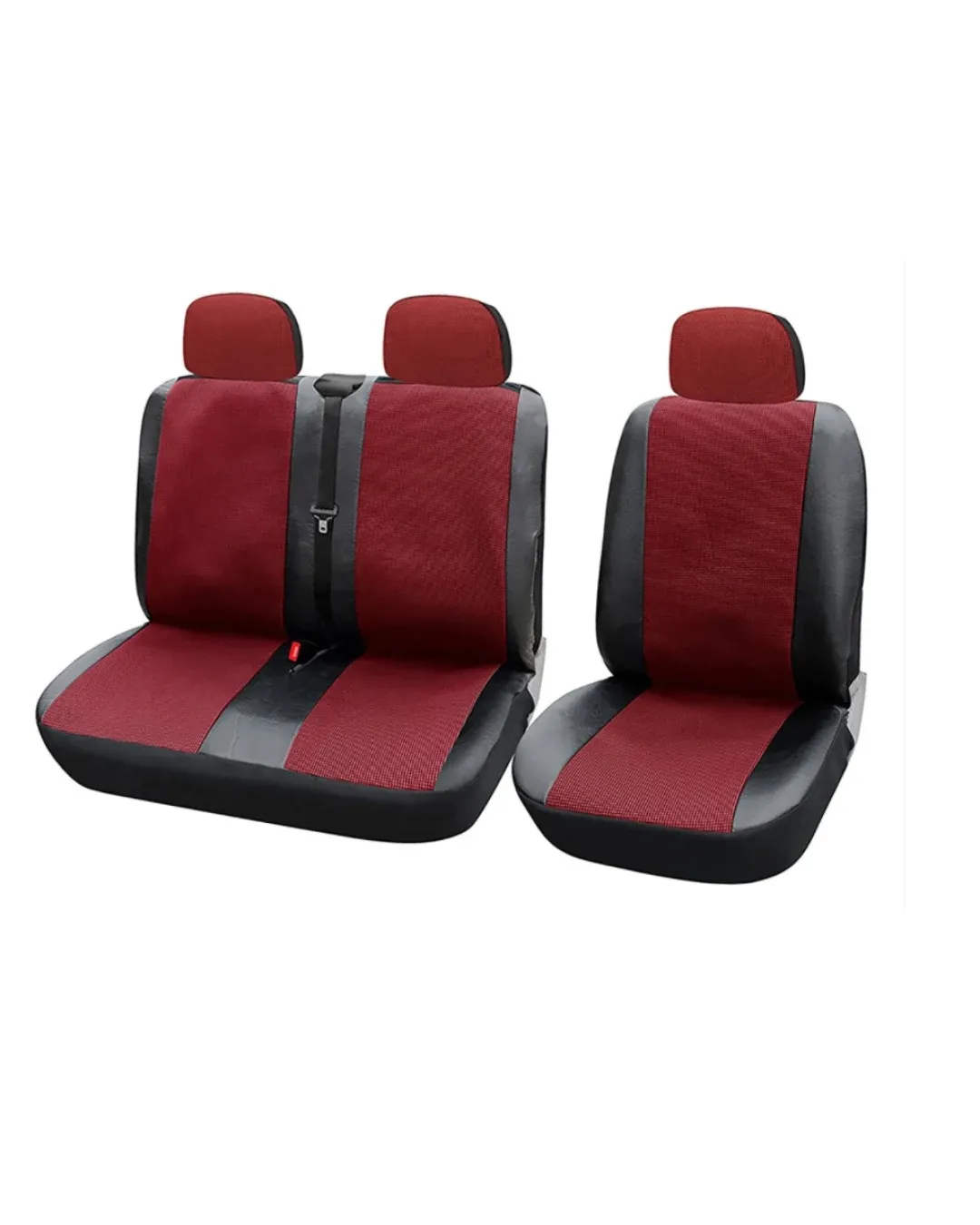 2+1 Комплект Лукс Универсални Калъфи , Тапицерия За Предни Седалки За Бус , Микробус , Цвят Червено-Черно , Текстил и Еко Кожа