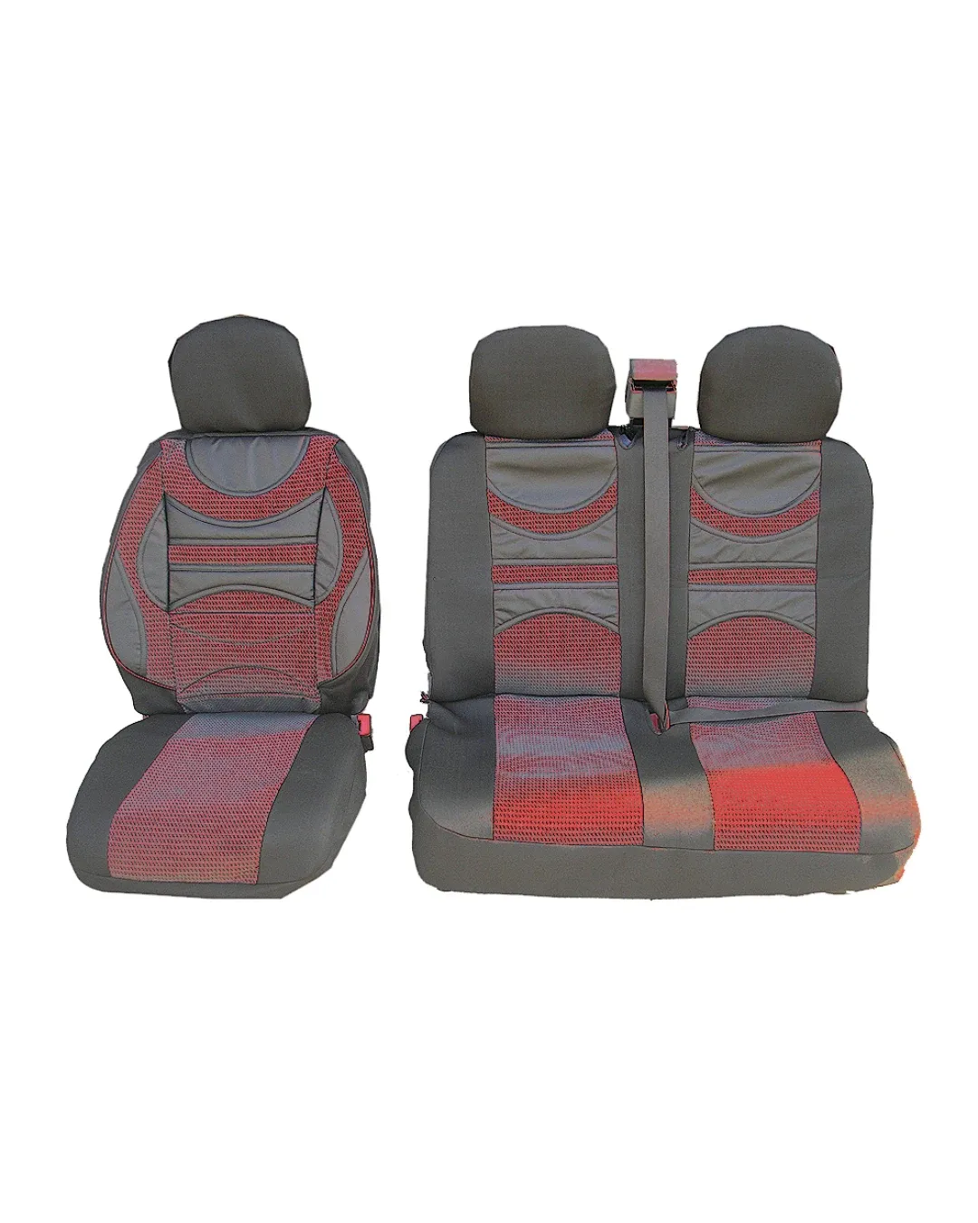 2+1 комплект универсални калъфи / тапицерия Premium 1 за бус с опора в лумбалната област - еко кожа и текстил - ЧЕРВЕНО-ЧЕРНО