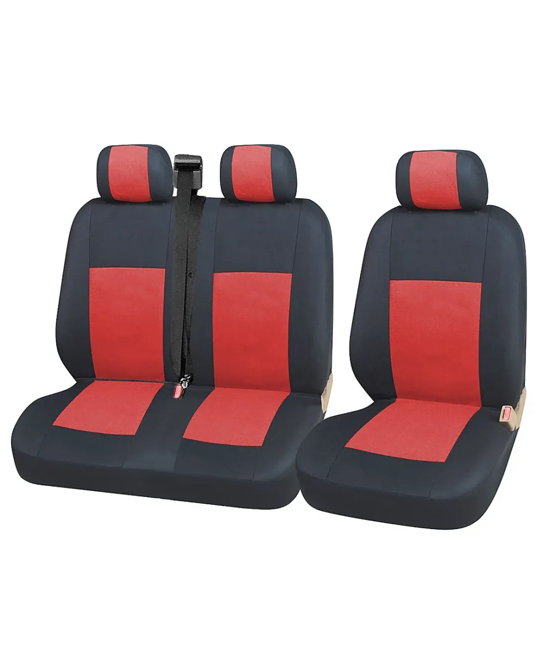 2+1 комплект универсални калъфи тапицерия за бус и микробус - Transit, Sprinter, Movano, Master, Crafter, Transporter, LT, Boxer, Jumper - черно и червено