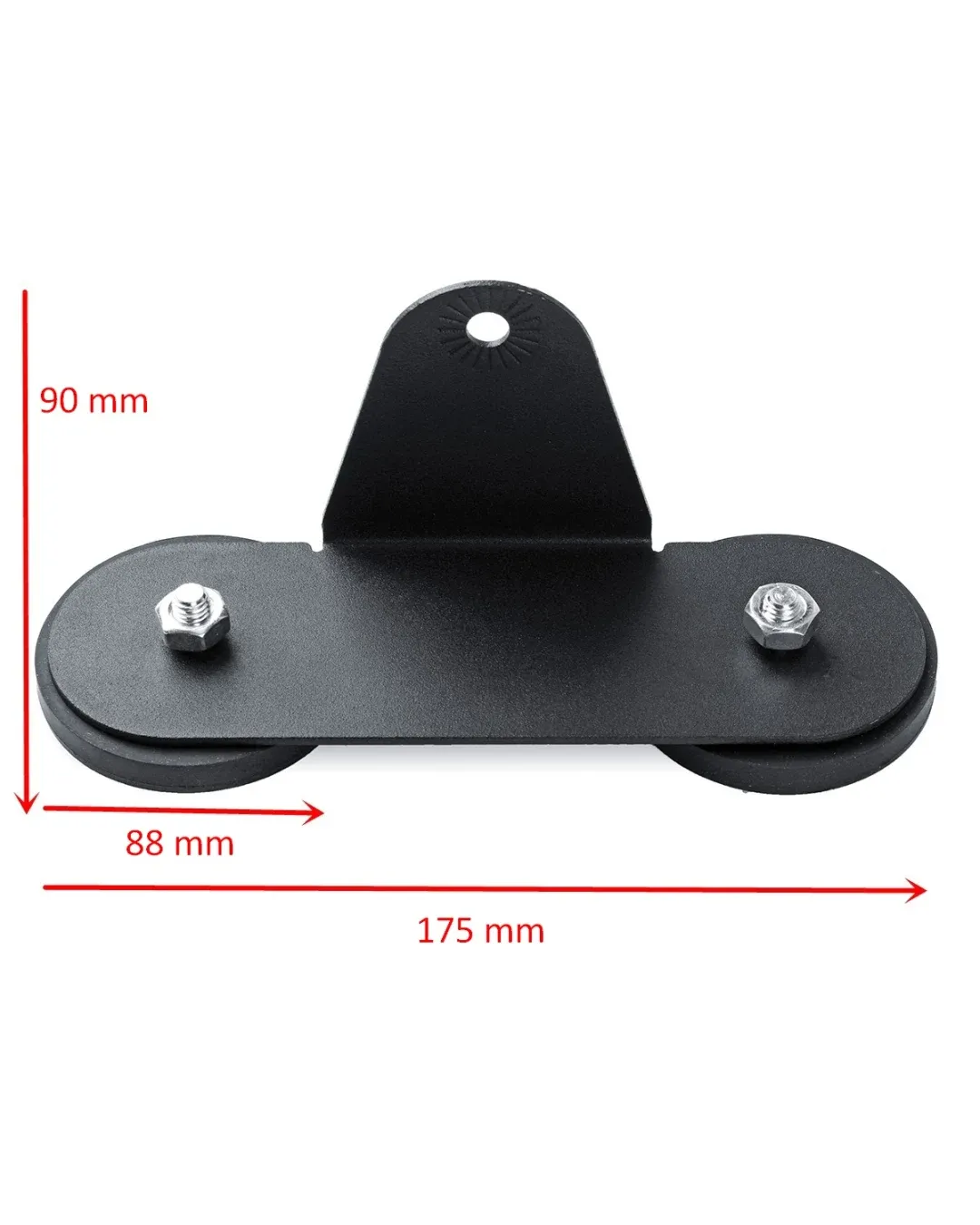 диаметър на магнита - ф88 мм.дебелина на магнита - 12 ммотвор за монтаж на Магнита - ф6 мм.Височина на скобата -90 ммДължина на Скобата -175 мм