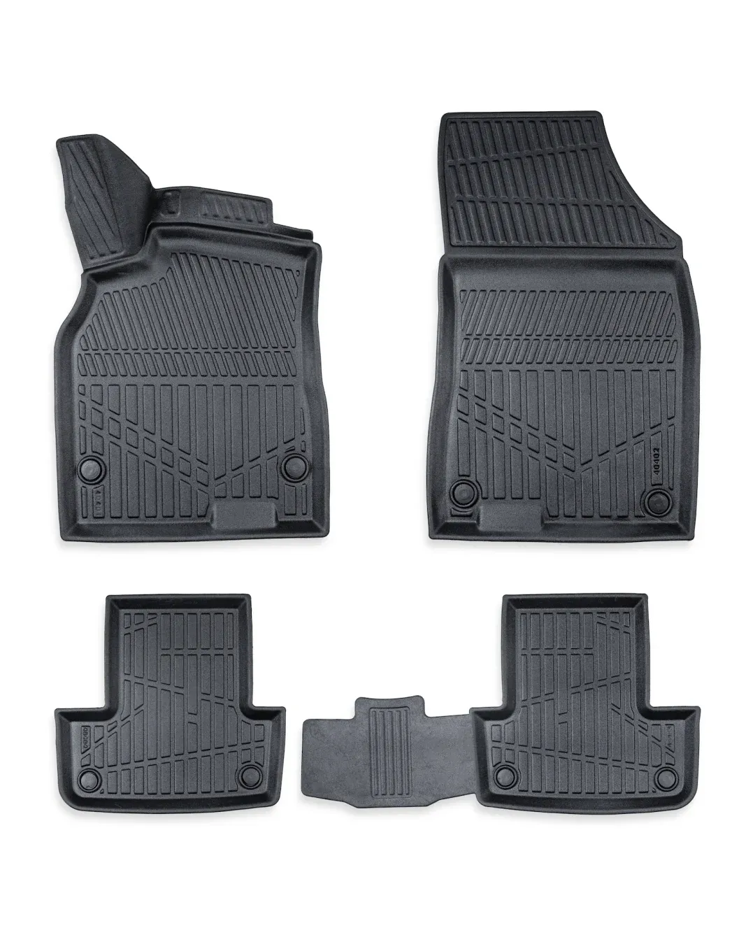 Пълен комплект от 4 стелки (предни + задни) с висок борд тип „леген“. Хващат всичко още на входа и не позволяват на мръсотията да стигне до оригиналния мокет - практично решение за кола, която се кара всеки ден.