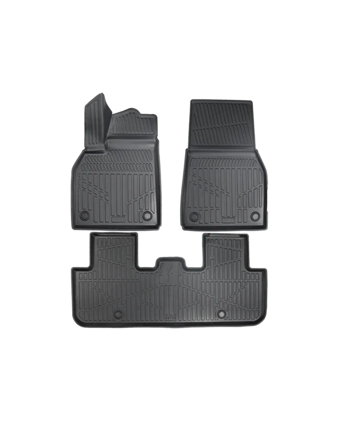 Пълен комплект от 4 стелки (предни + задни), изработени специално за Juniper. Високият борд тип „леген“ хваща водата, калта, снега и праха още на входа и не ги пуска до оригиналния мокет - супер важно за електрическа кола, където чистотата и липсата на миризми са ключови за комфорта.
