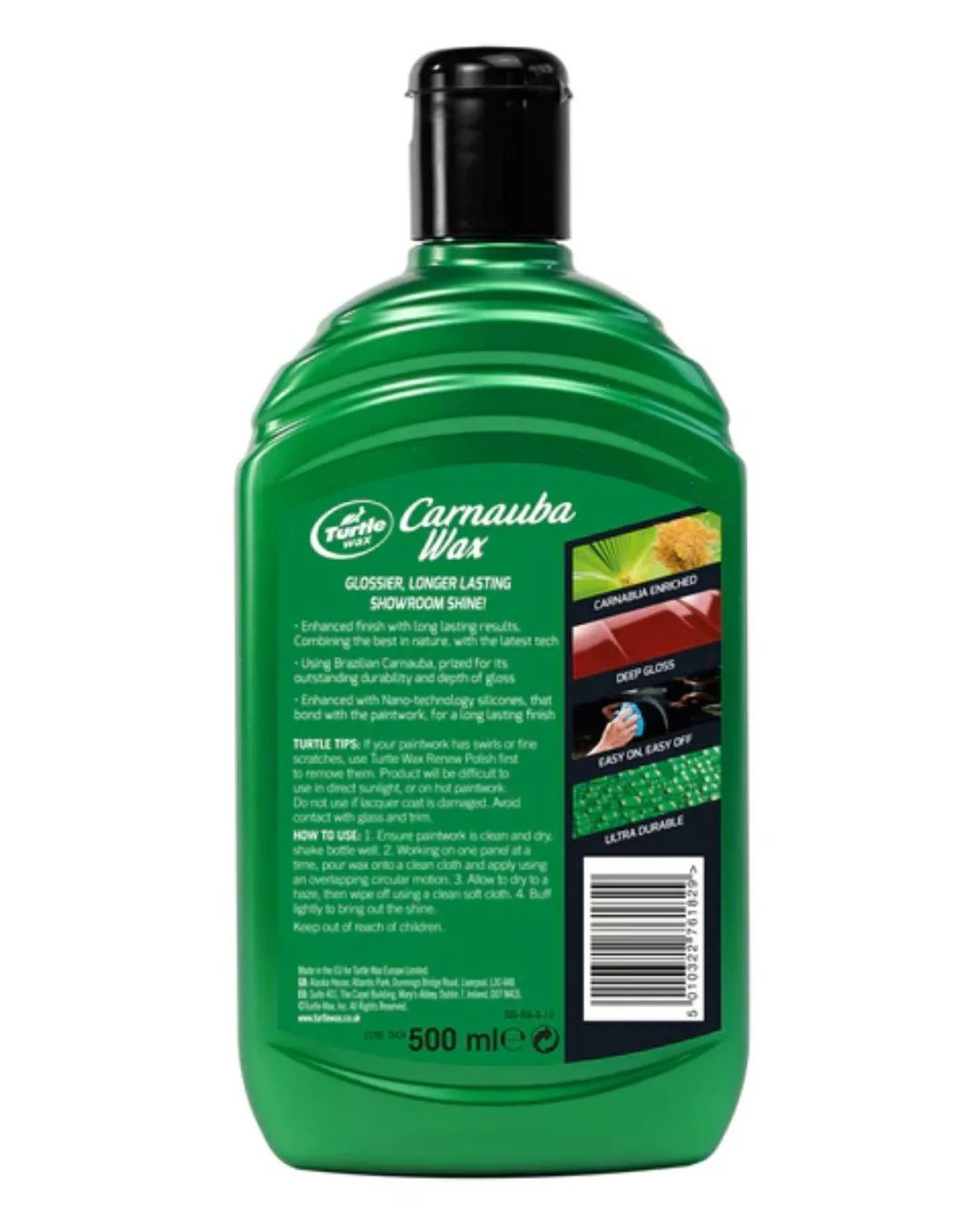 Turtle Wax Carnauba Car Wax е проектирана за потребители, които търсят професионални резултати с лесно и бързо нанасяне: