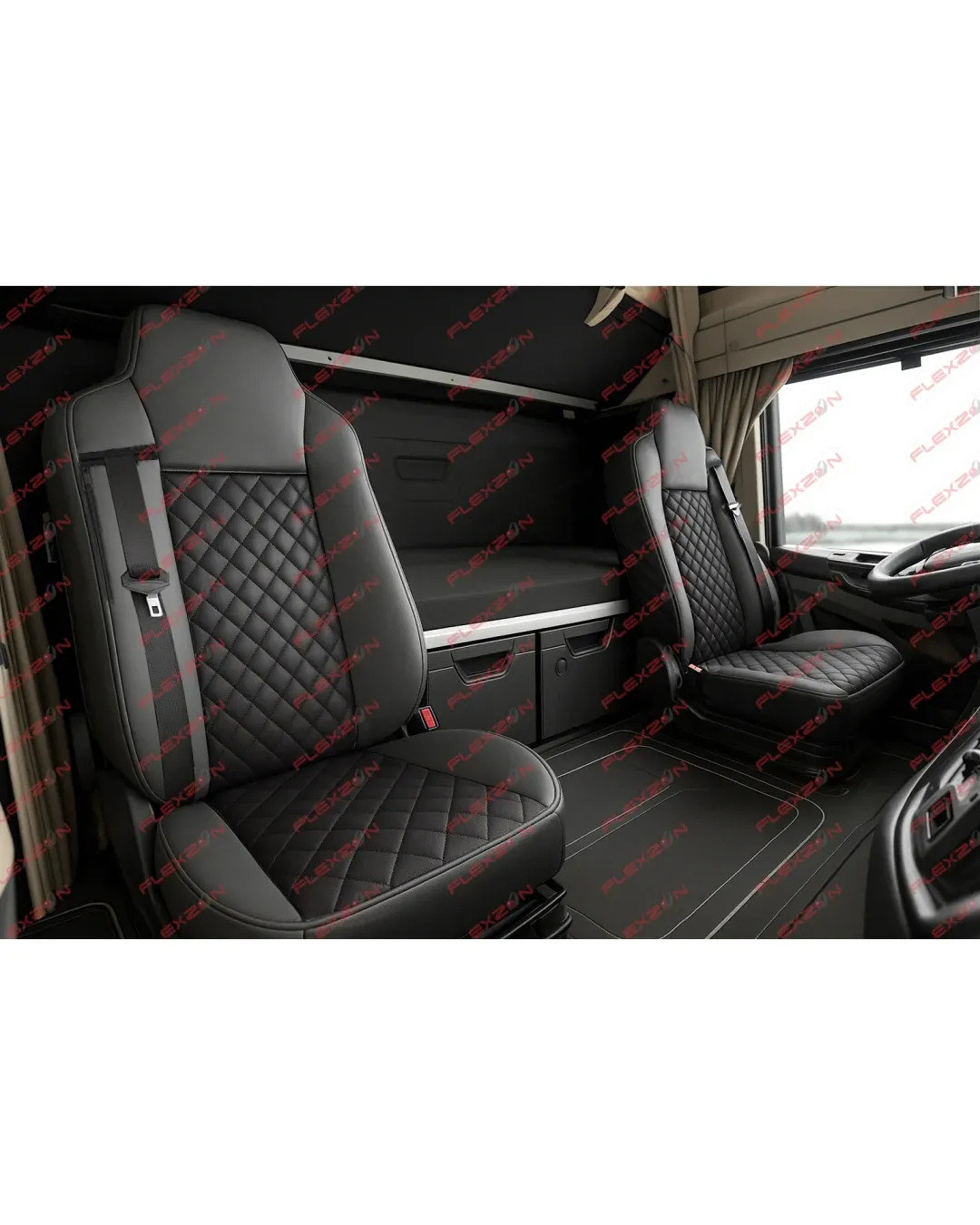 Комплект 1+1 тапицерия от еко кожа за IVECO STRALIS S-WAY 2021 - черно