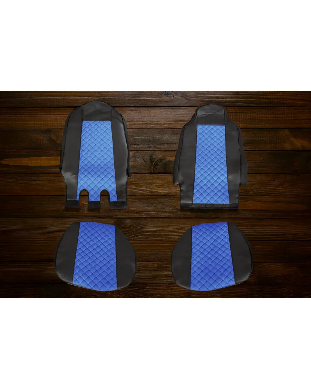 Комплект 1+1 тапицерия от еко кожа за IVECO STRALIS S-WAY 2021 - синьо-черно