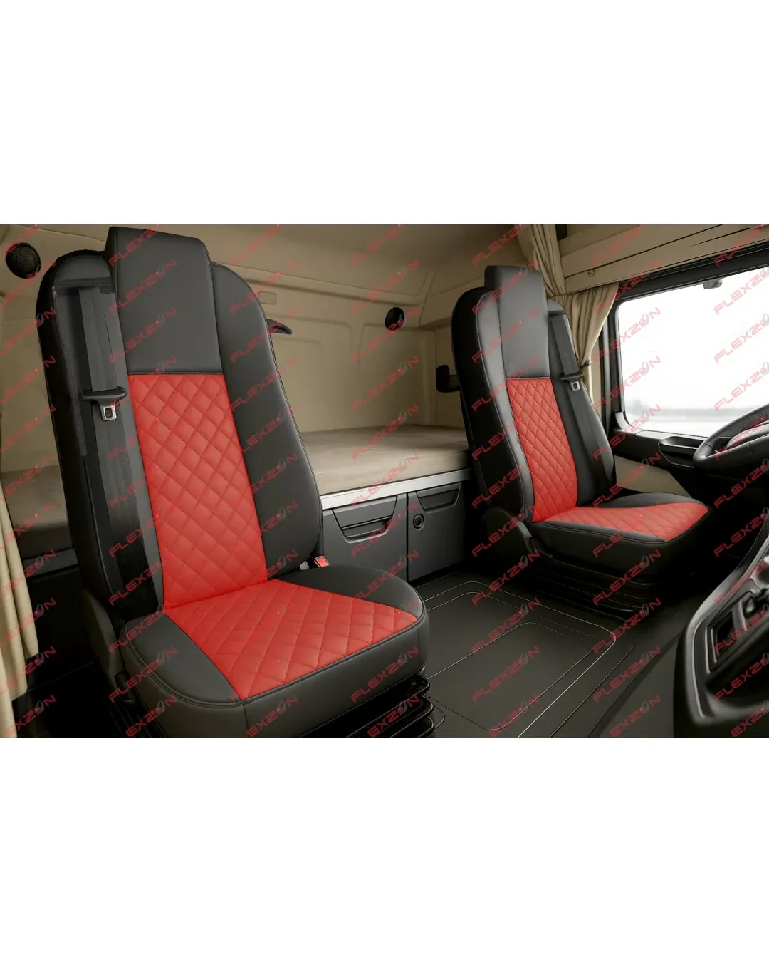 Комплект 1+1 тапицерия от еко кожа за MERCEDES ACTROS MP4 EURO 6 2015-2021 - червено-черно