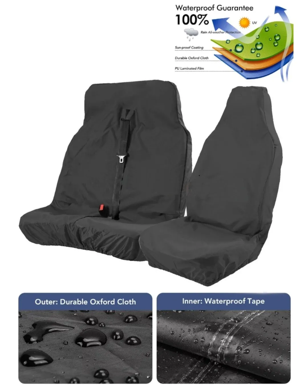 Комплект 2+1 Универсални водоустойчиви протектори от Oxford плат за предни седалки на бус - черни