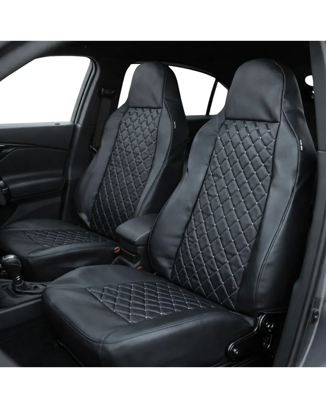 Висококачествена интегрирана тапицерия за предните седалки на автомобил, изработена от еко кожа с елегантен капитониран дизайн. Моделът е създаден да придаде модерен и луксозен вид на интериора, като същевременно осигурява комфорт и защита на оригиналните седалки.