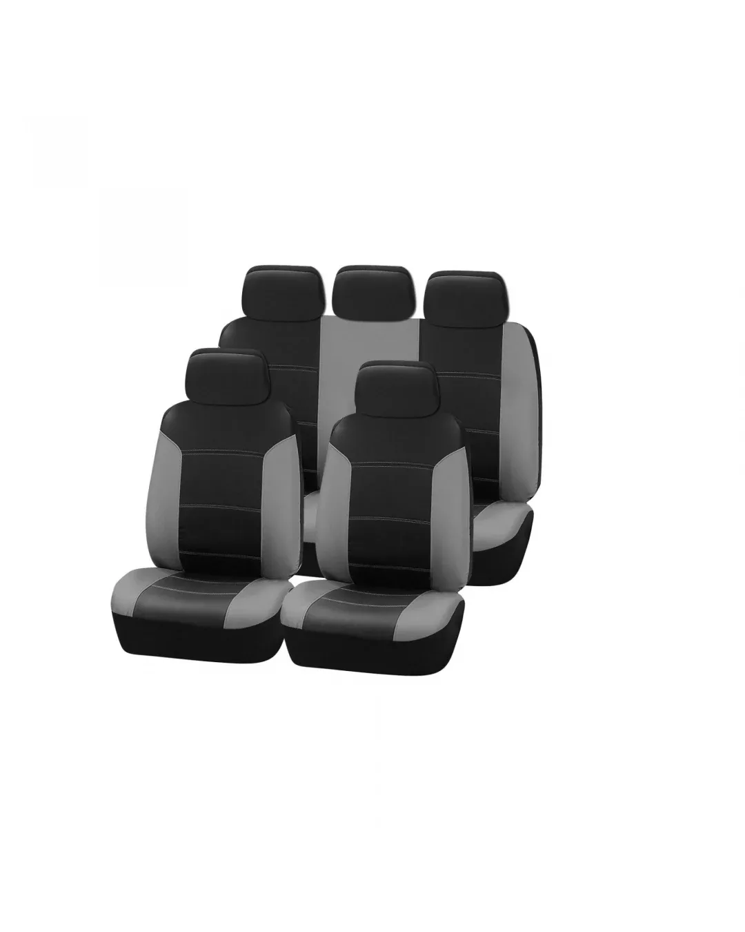 Комплект калъфи за предни и задни седалки, тапицерия за автомобил пълен комплект от Еко кожа в Черно и Сиво