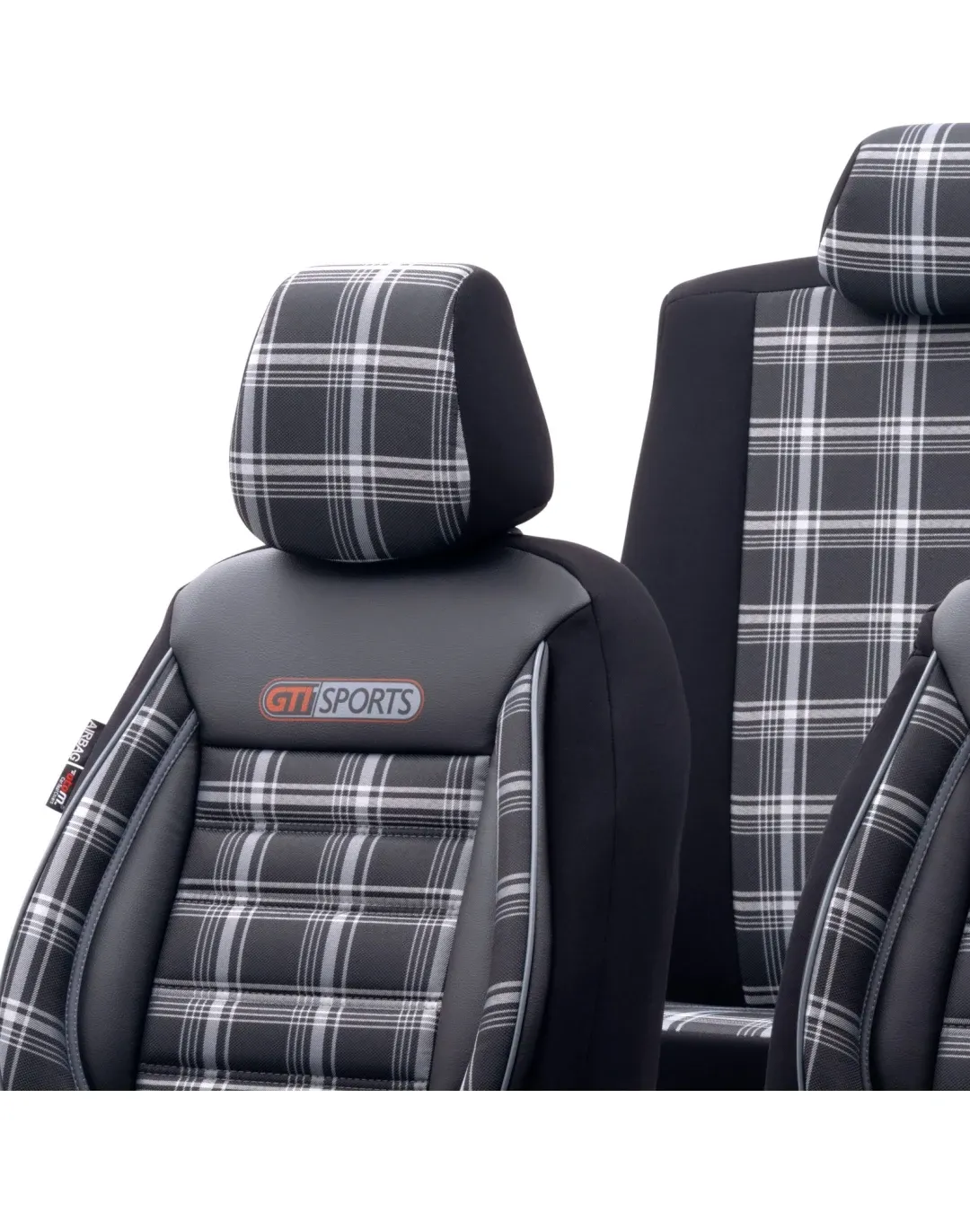 Комплект Луксозна Тапицерия OTOM текстил с еко кожа GTI SPORTS Design – Черна със сив шев, за Предни и Задни Седалки