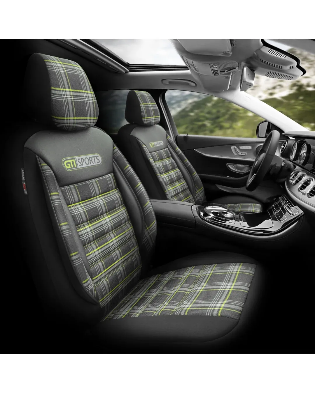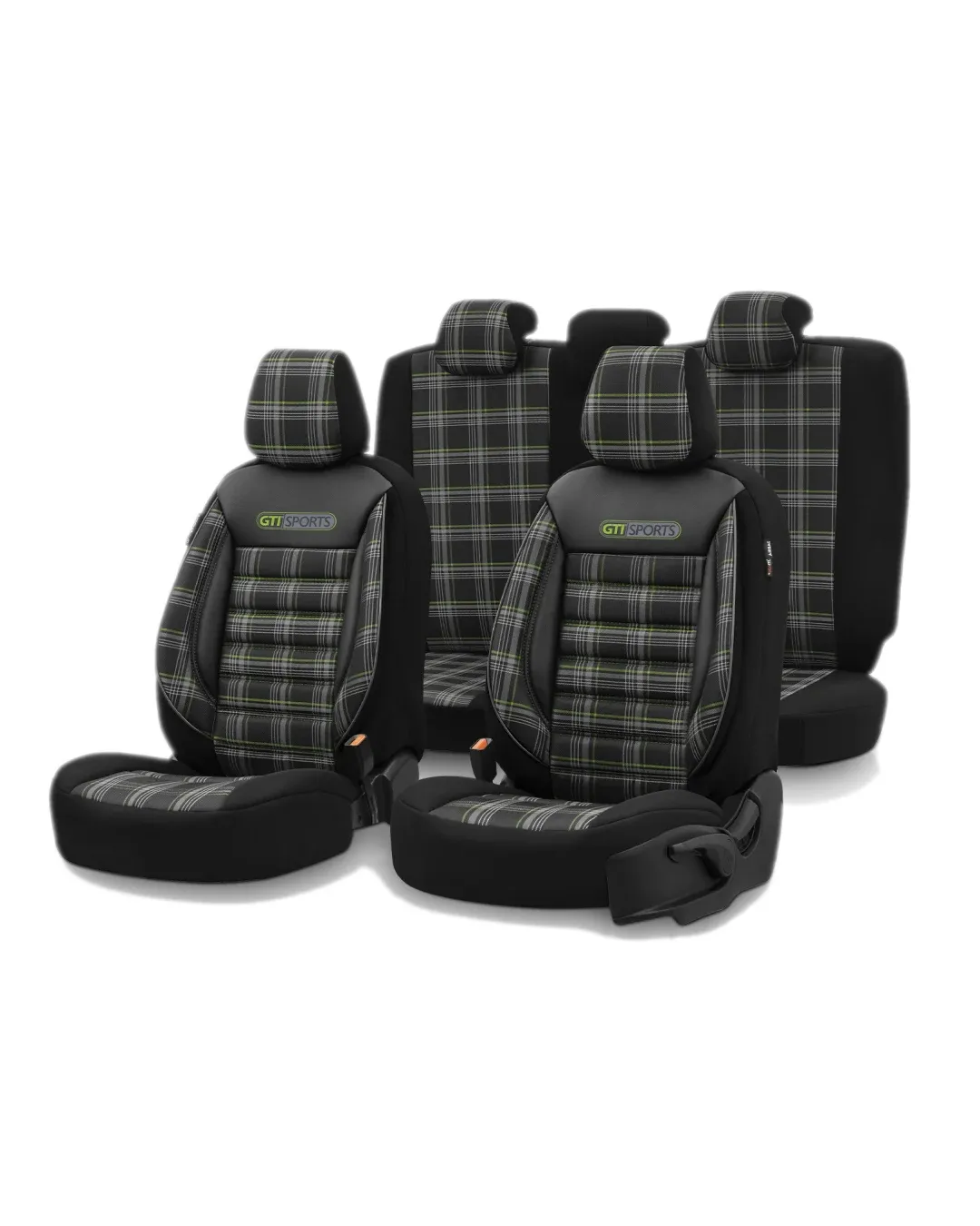 Комплект Луксозна Тапицерия OTOM текстил с еко кожа GTI SPORTS Design – Черна със зелен шев, за Предни и Задни Седалки
