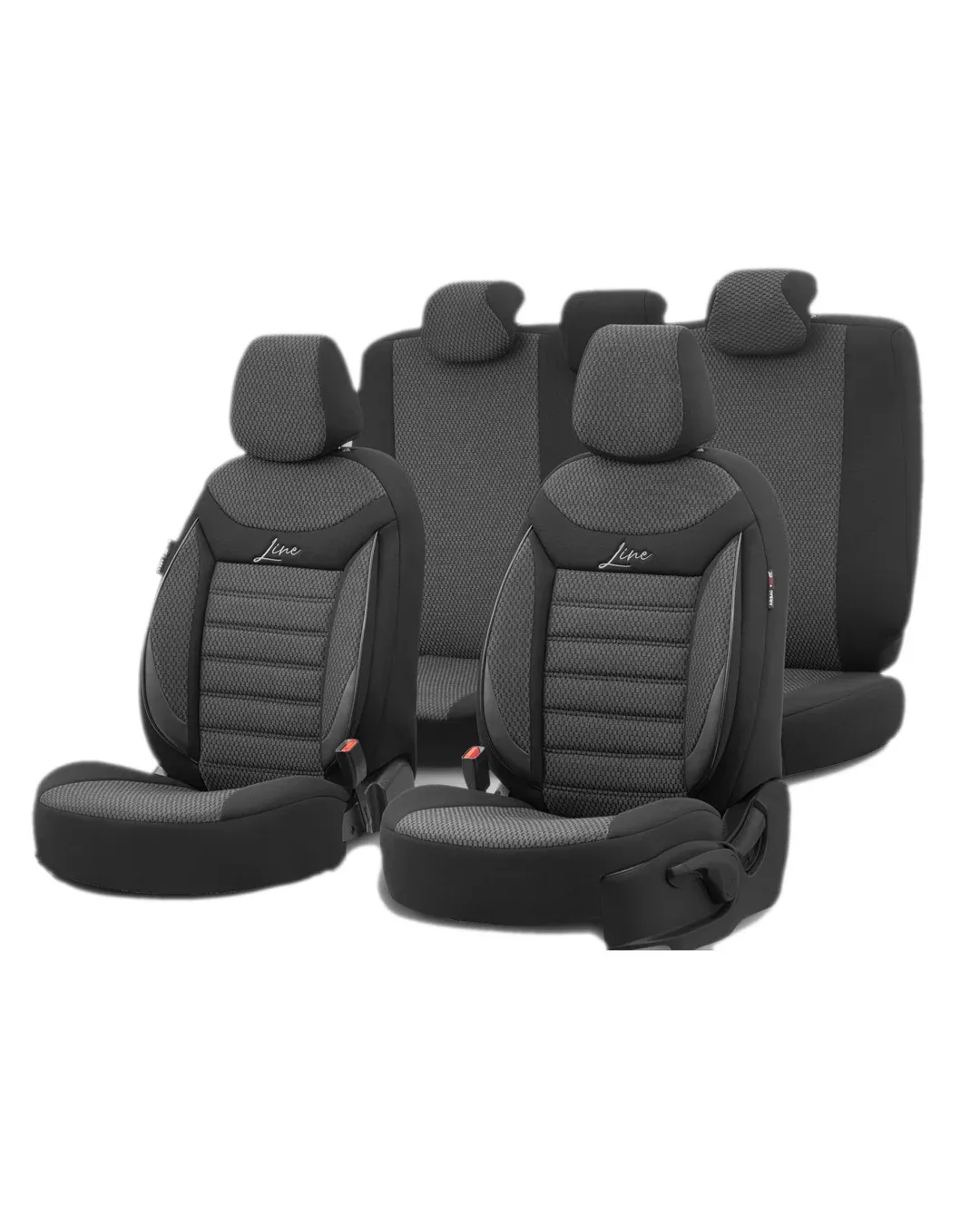 Комплект Луксозна Тапицерия OTOM текстил с еко кожа LINE Design – Черна с черен шев, за Предни и Задни Седалки