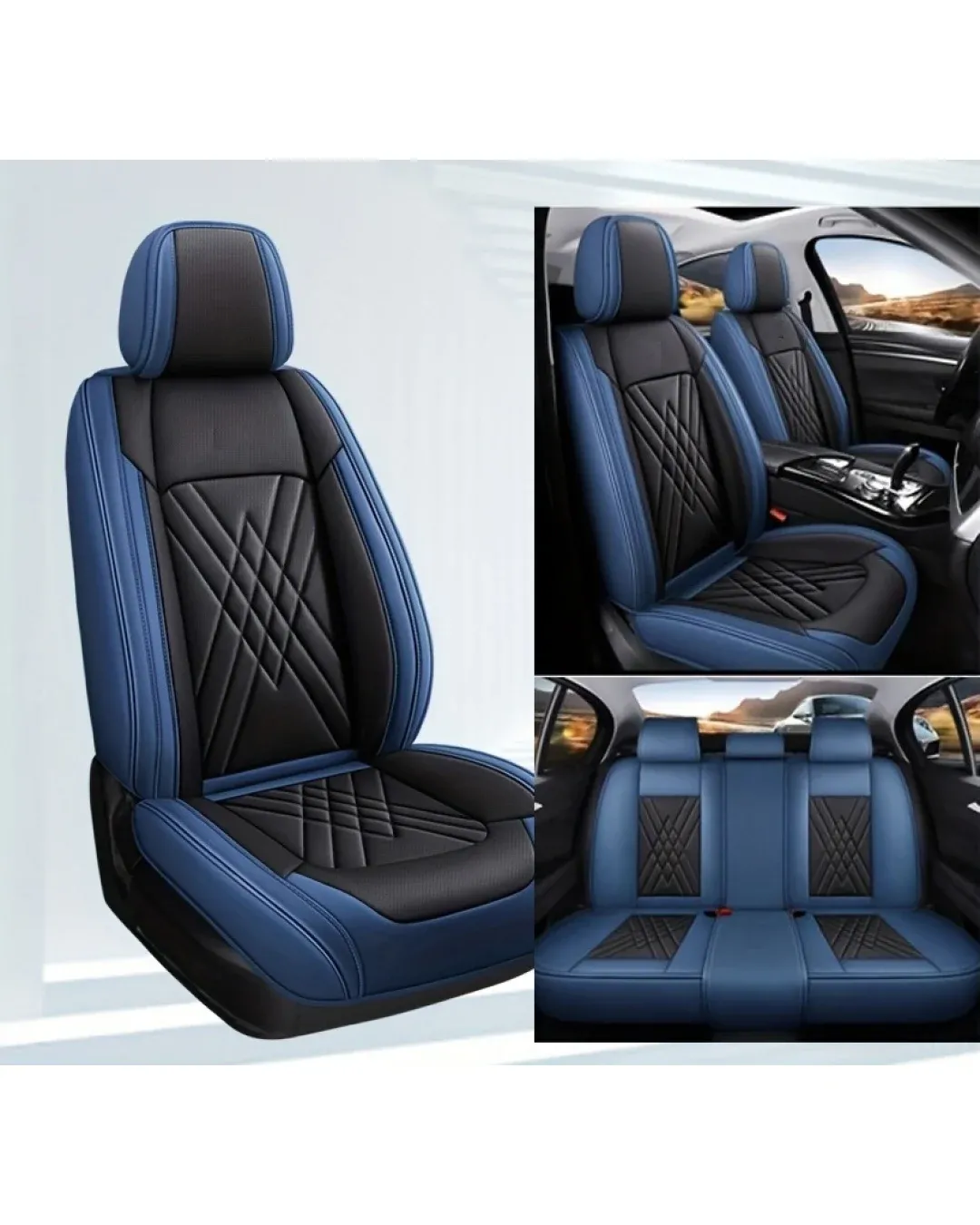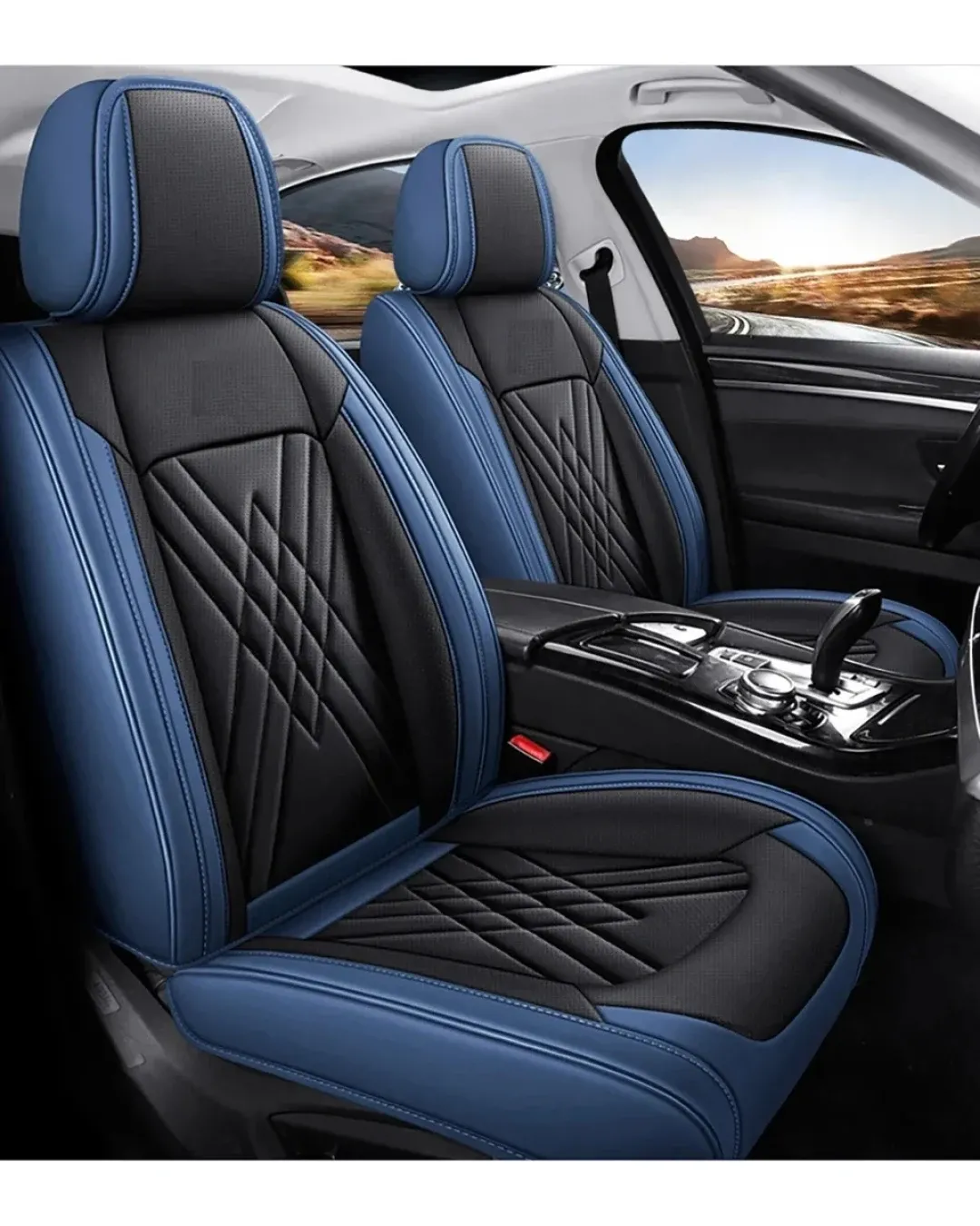 Комплект Луксозна универсална кожена тапицерия, синьо и черно за Предни и Задни седалки