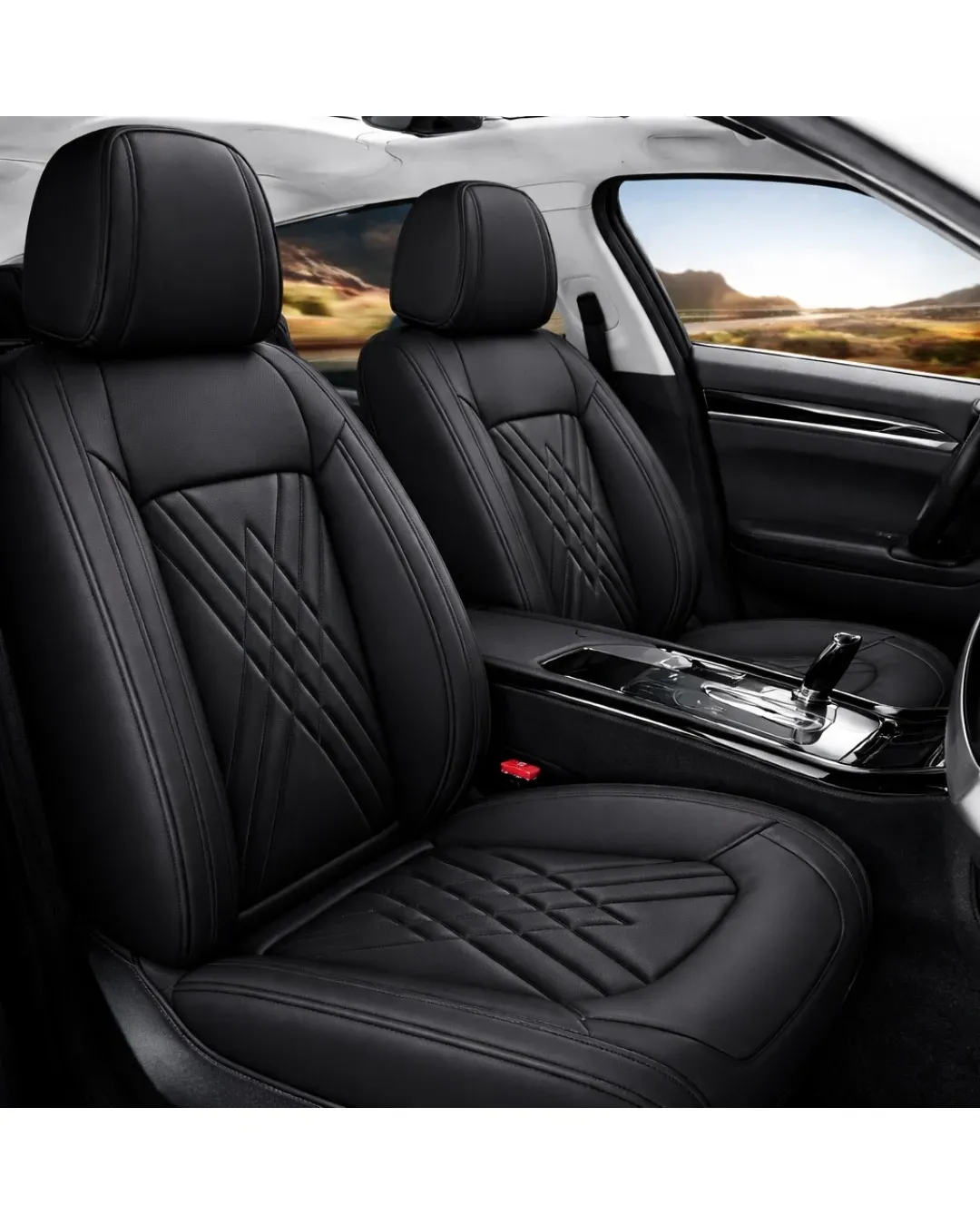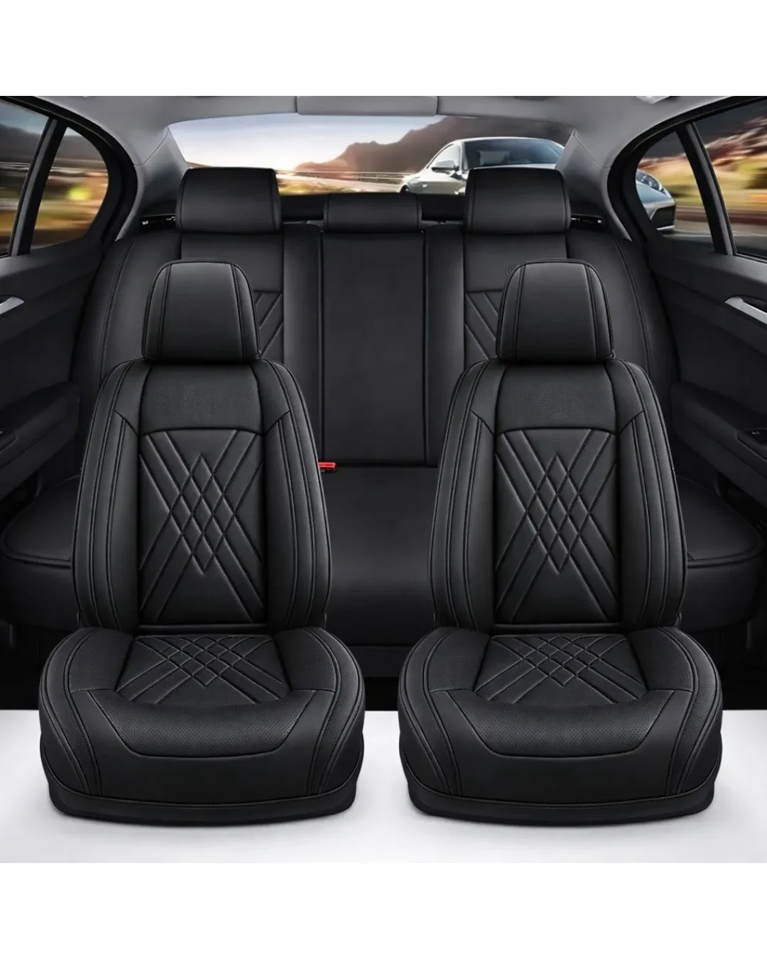Комплект Луксозна универсална тапицерия кожа, Черна за Предни и Задни седалки