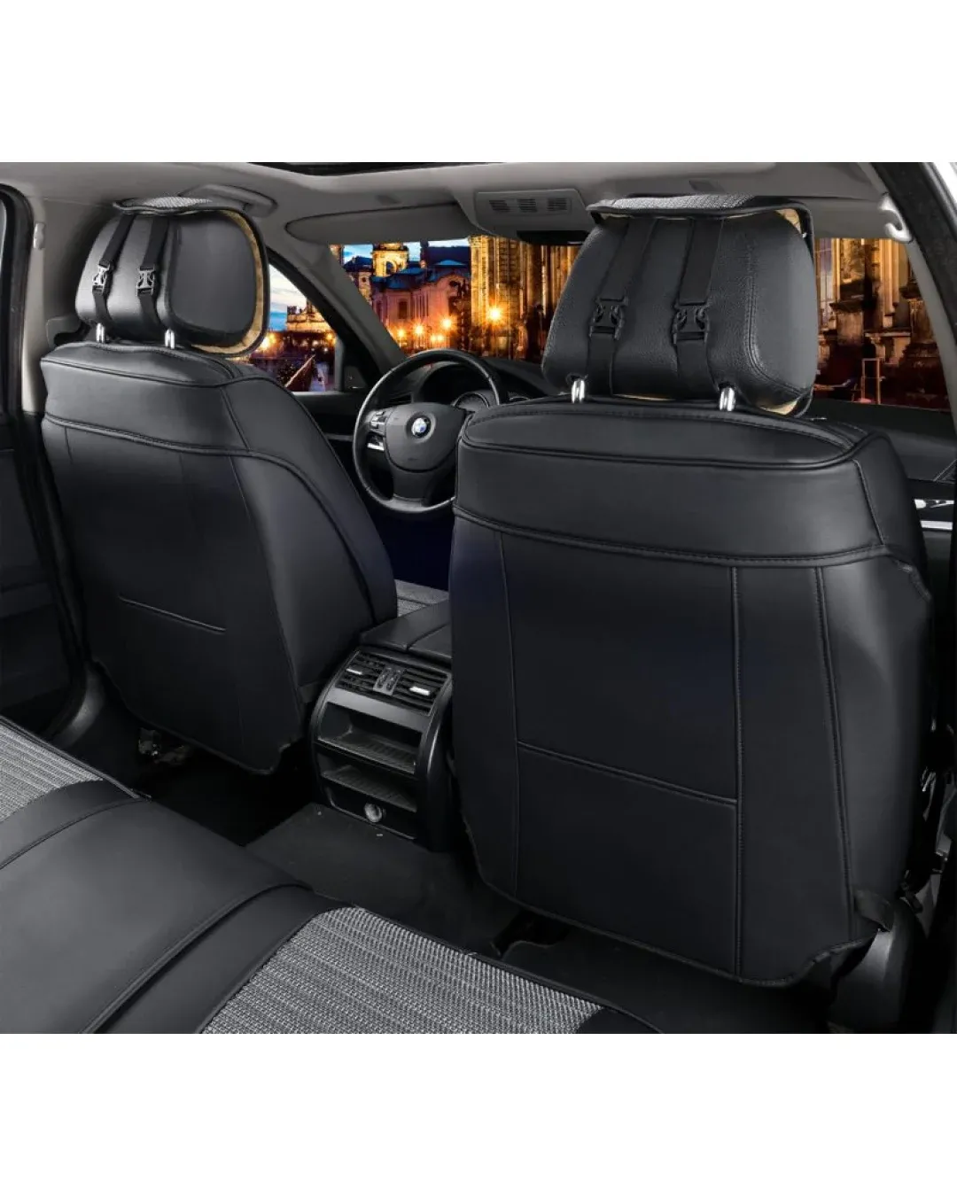 Лукс Универсална Кожа и Плат Тапицерия Сиво и Черно/ Калъфи за предни седалки TAP850
