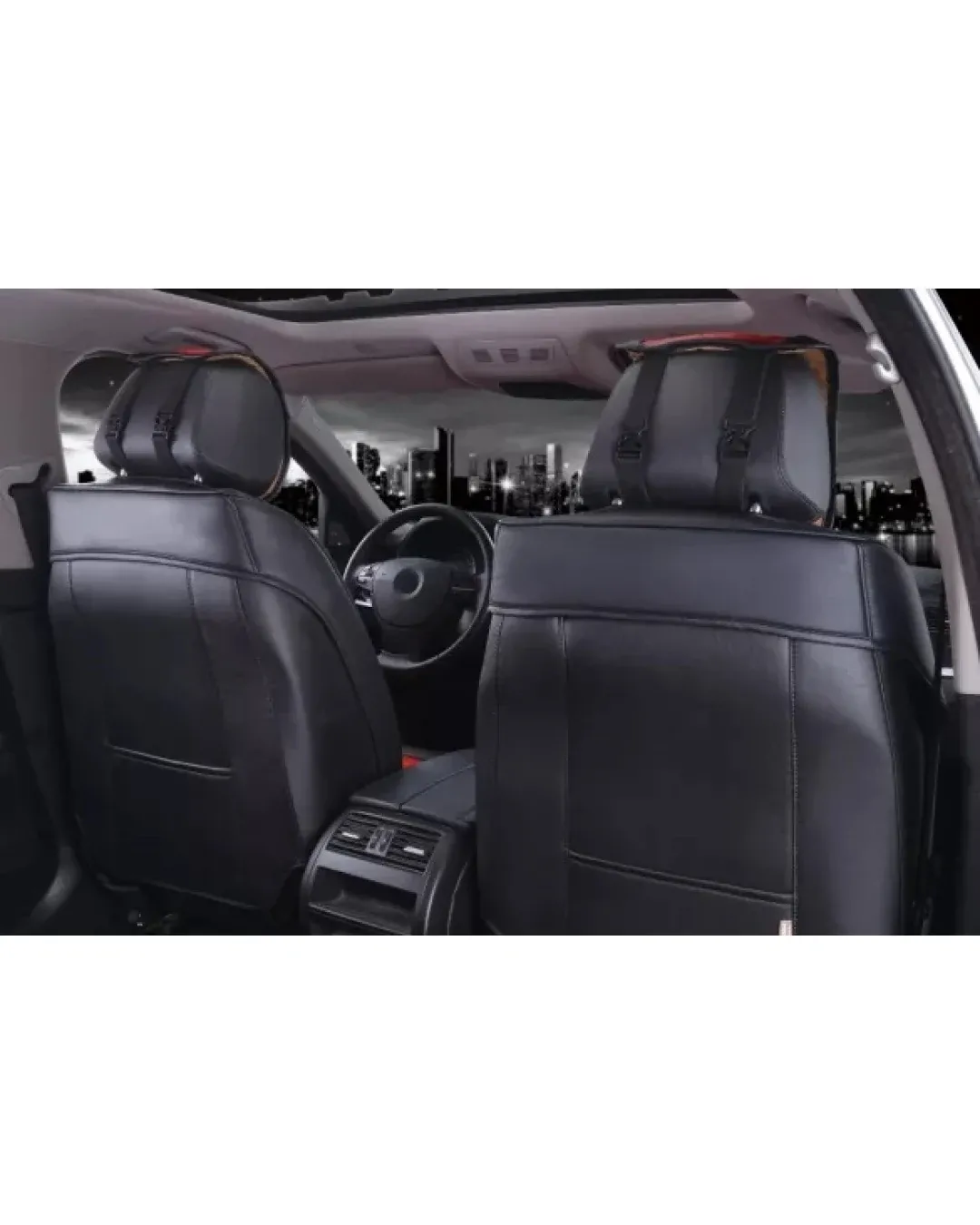 Луксозна тапицерия Изработени от висококачествена PU изкуствена кожа и мека пяна, осигуряват удобно чувство за сядане. Ръчно шити. Универсален дизайн, подходящ за всички автомобили. Дизайн, съвместим с airbag - въздушни възглавници. Устойчивост на износване, добър водоустойчив ефект и силна огнезащитна способност. Лесна инсталация. Цялостен дизайн, покрива предната и задната част на седалката. Пакет, включващ: 2 предни калъфа за седалки