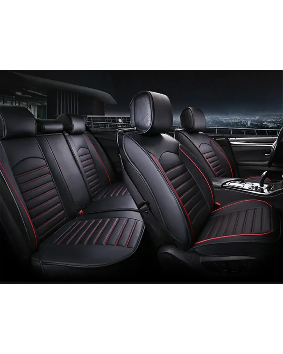 Луксозна тапицерия Изработени от висококачествена PU изкусвена кожа и мека пяна, осигуряват удобно чувство за сядане. Ръчно шити. Универсален дизайн, подходящ за всички автомобили. Дизайн, съвместим с airbag - въздушни възглавници. Устойчивост на износване, добър водоустойчив ефект и силна огнезащитна способност. Лесна инсталация. Цялостен дизайн, покрива предната и задната част на седалката. Пакет, включващ: 9 части, предни и задни.