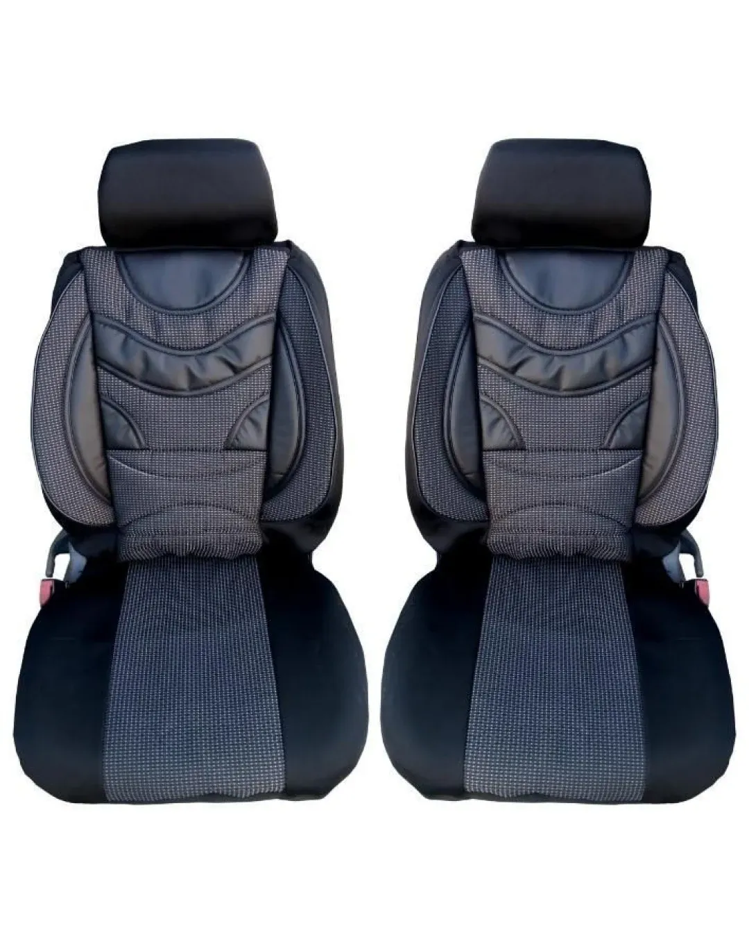 характеристики: - материал: високо качествена твърда премиум материя за издръжливост, дунапренена подплата за комфорт, еко кожа на места за предпазване от преждевременно износване, двуслойна дишаща материя за финишен слой - произведени от главните ОЕМ автомобилни фабрики - ушити са така, че да позволяват свободно употребата на предпазни колани, подлакътници, подглавници - перат се в пералня на 40 градуса - сета включва 2 броя за предни седалки и 2 броя за подглавниците