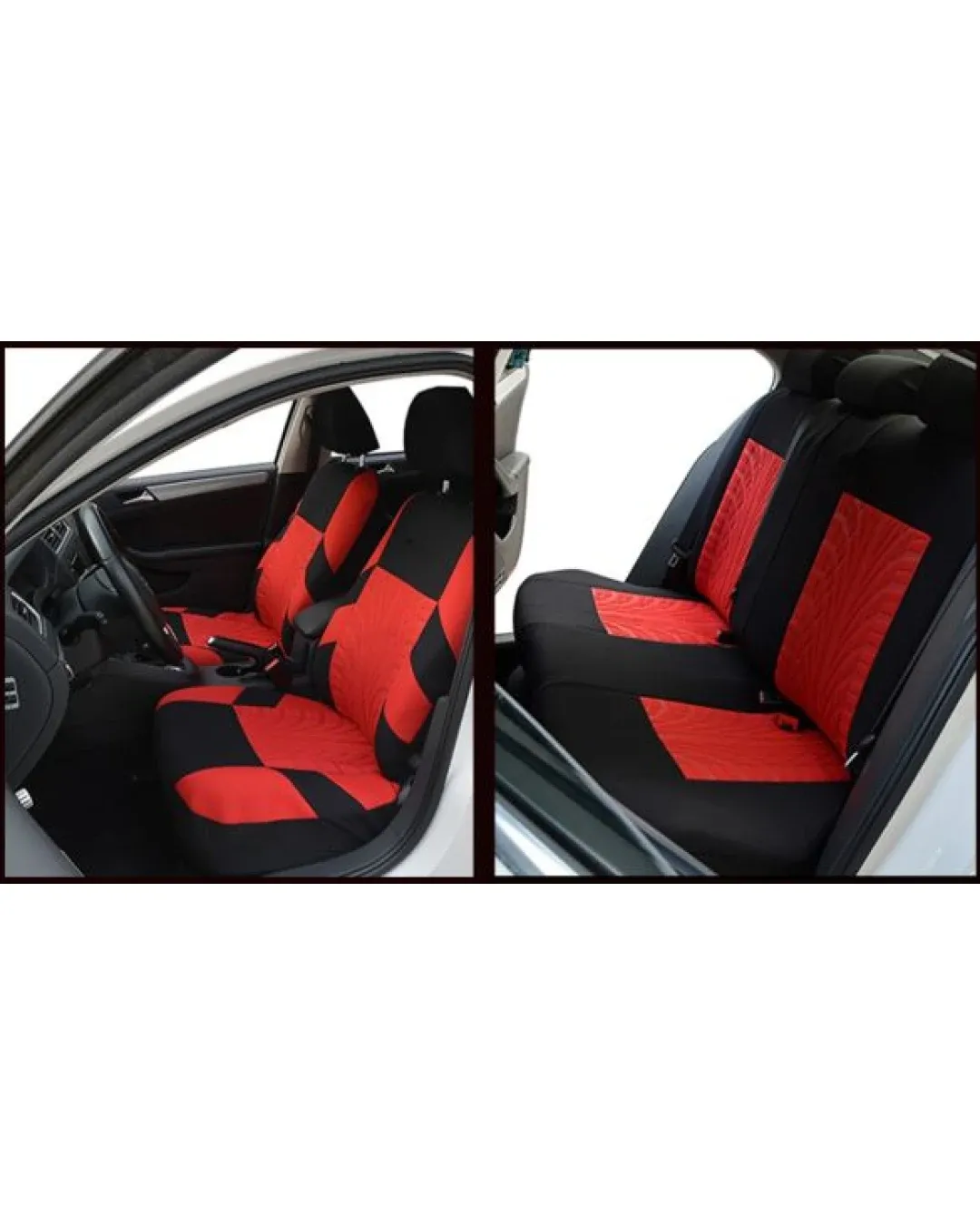 Нова универсална текстилна авто тапицерия калъфи за автомобилни седалки пълен комплект 9 части в червено-черно