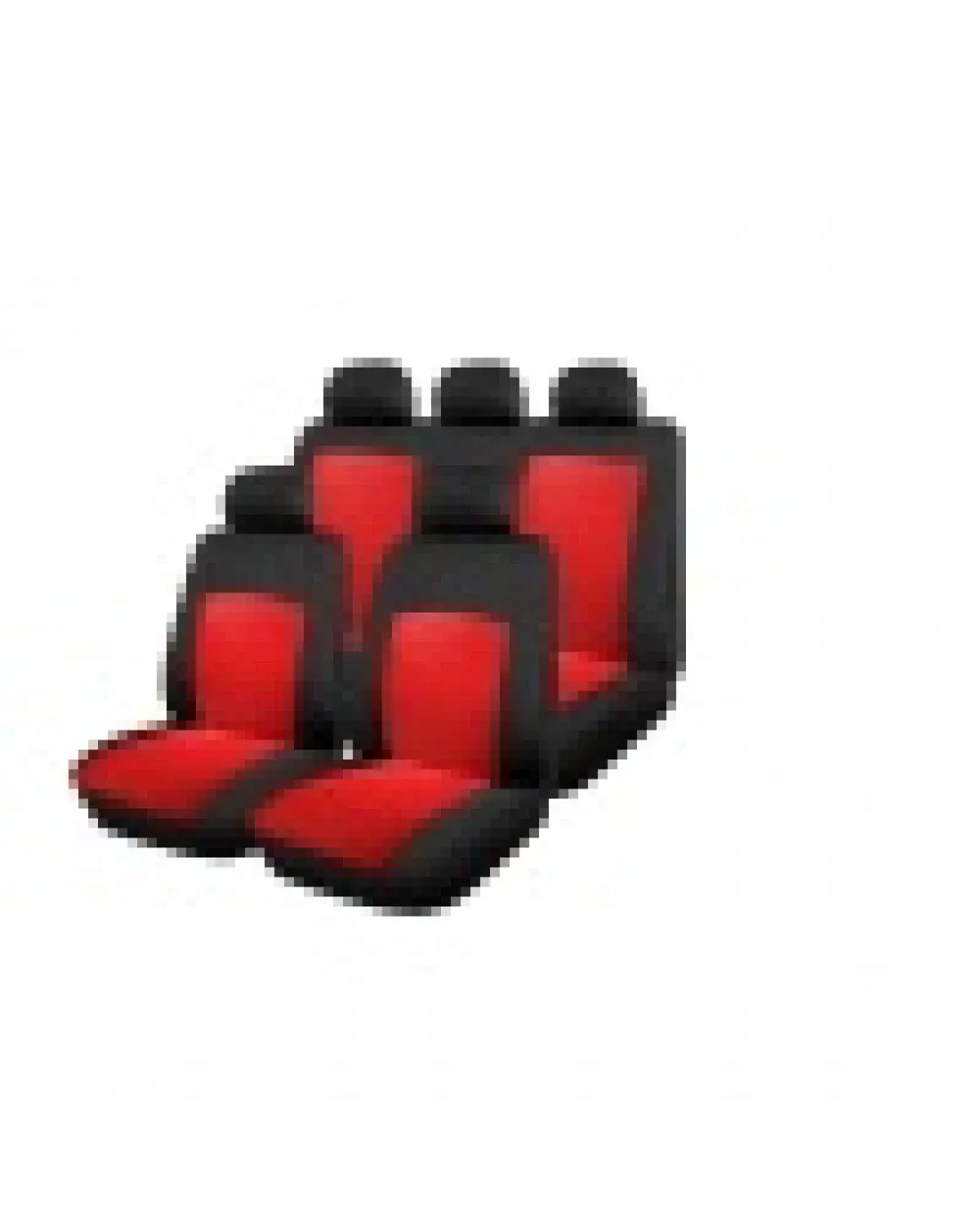 Пълен комплект авто тапицерия калъфи за седалки за Dacia Logan I 2004-2012, Dacia Logan II 2012+, червено-черно