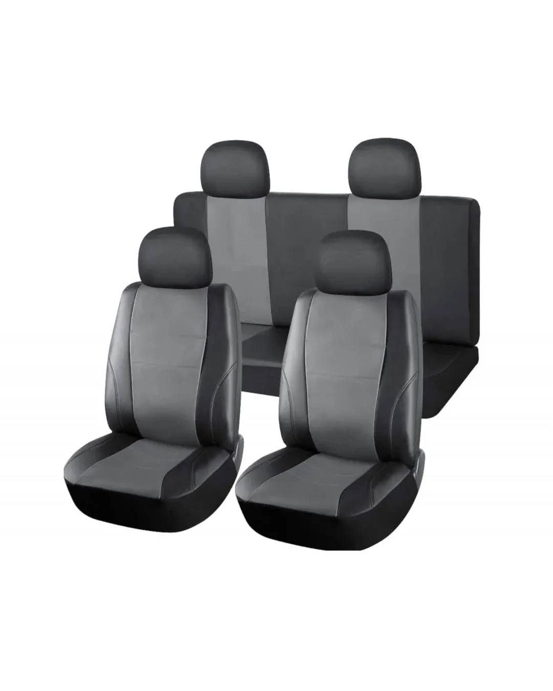 Пълен Комплект Калъфи Тапицерия За Автомобил За Предни и Задни Седалки Еко Кожа Сиво Черно 8 Части