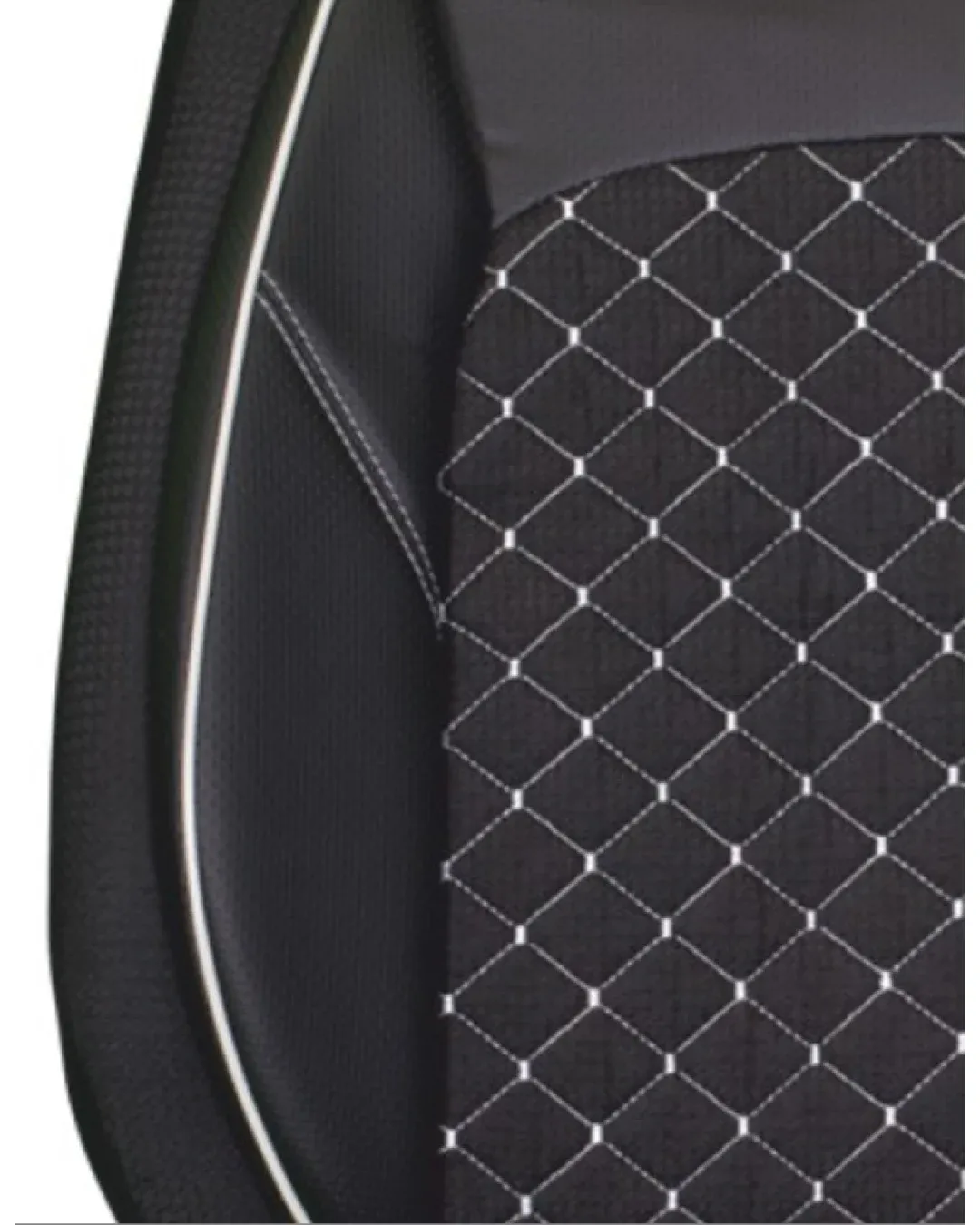 Пълен комплект PREMIUM тапицерия/калъфи от еко кожа и текстил - черен цвят с бял шев