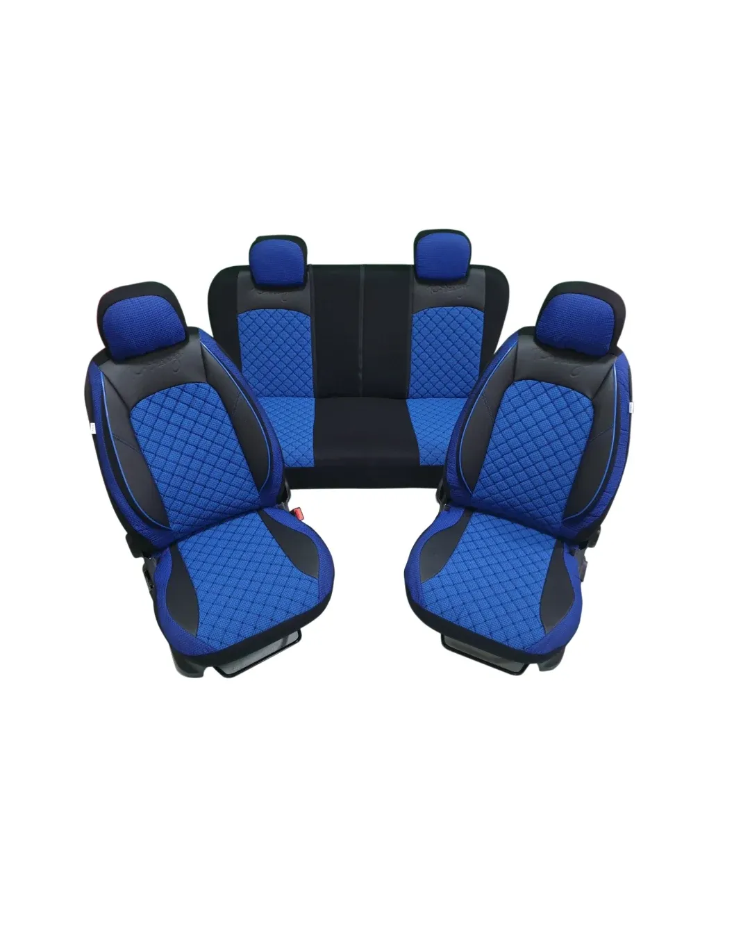 Пълен комплект PREMIUM тапицерия/калъфи от еко кожа и текстил - синьо с черно