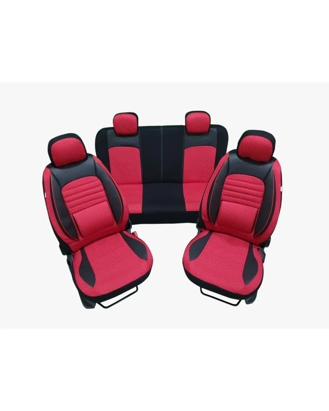 Комплектът включва: 1 x калъф за шофьорската седалка 1 x калъф за пасажерска седалка 1 х калъф за задна седалка 4 x калъфи за облегалки за глава