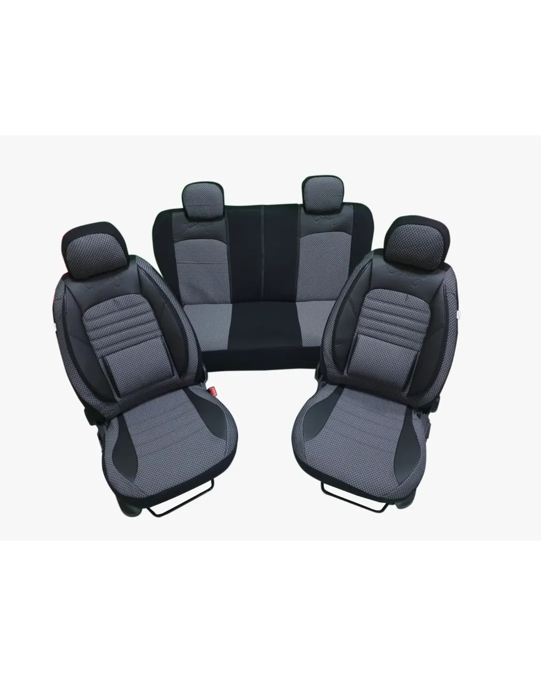 Комплектът включва: 1 x калъф за шофьорската седалка 1 x калъф за пасажерска седалка 1 х калъф за задна седалка 4 x калъфи за облегалки за глава