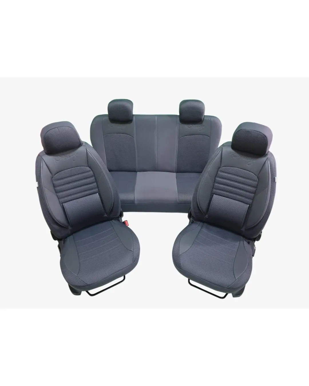 Комплектът включва: 1 x калъф за шофьорската седалка 1 x калъф за пасажерска седалка 1 х калъф за задна седалка 4 x калъфи за облегалки за глава