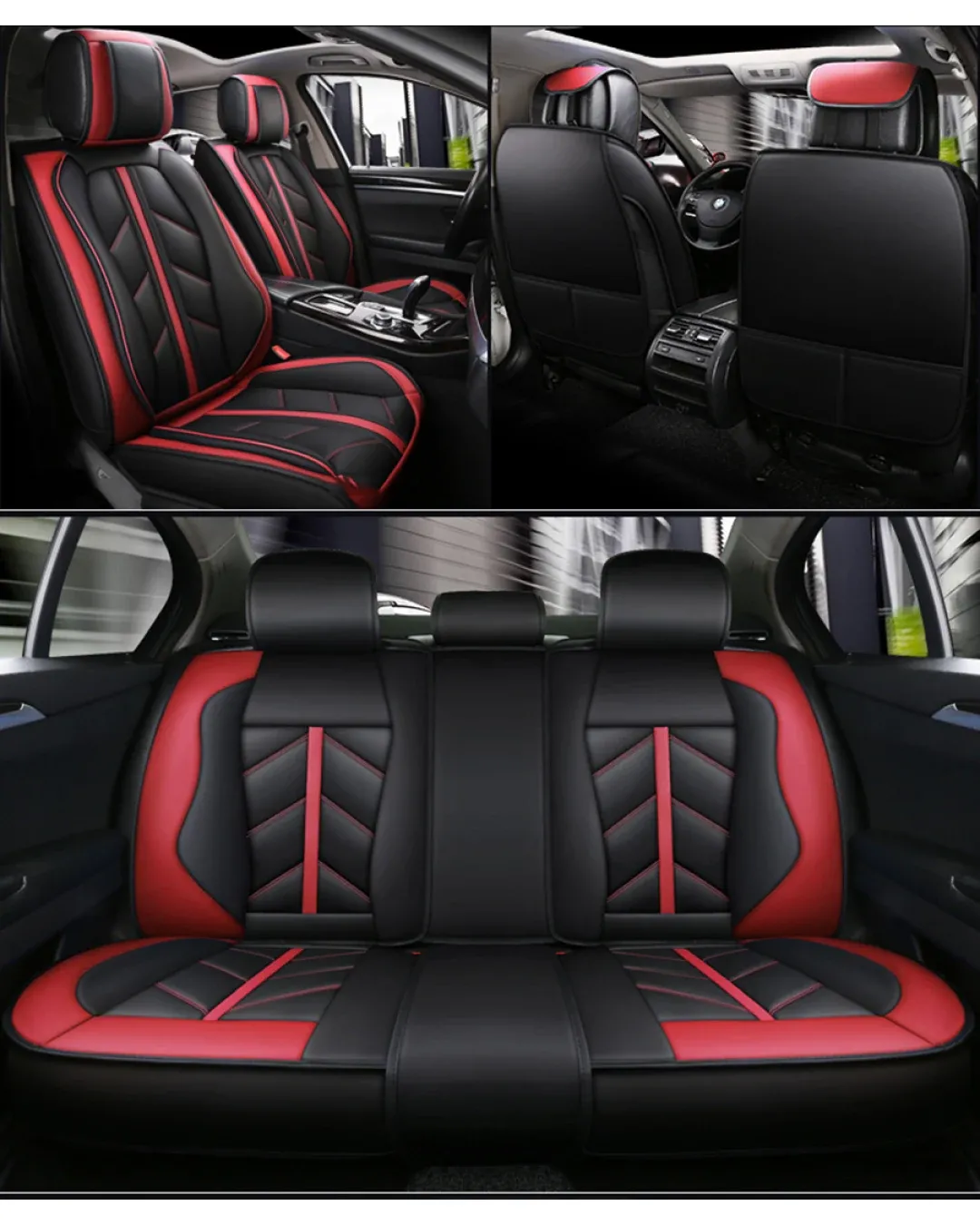 Луксозна тапицерия Изработени от висококачествена PU еко кожа и мека пяна, осигуряващи удобно чувство при сядане. Ръчно шити. Универсален дизайн, подходящ за всички автомобили. Дизайн, съвместим с airbag - въздушни възглавници. Устойчивост на износване, добър водоустойчив ефект и силна огнезащитна способност. Лесна инсталация. Цялостен дизайн, покрива предната и задната част на седалката. Пълен комплект за предните и задните седалки ( Облегалката на задната седалка е от три части , които се захващат заедно и стават едно цяло , но позволяват делене на седалката, както и използване на подлакътник, ако има такъв).
