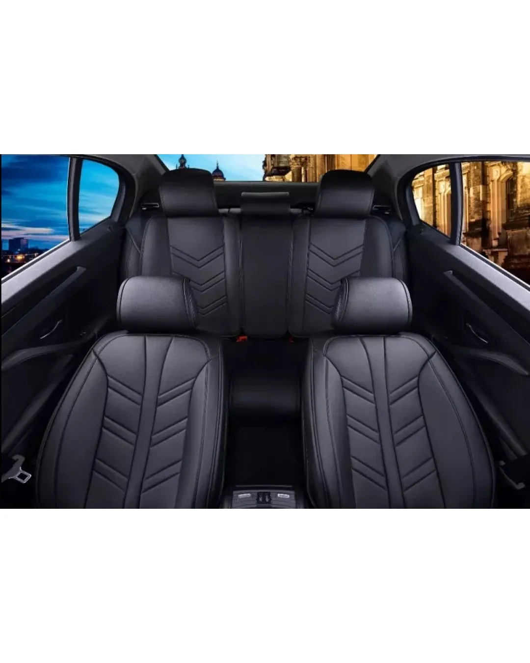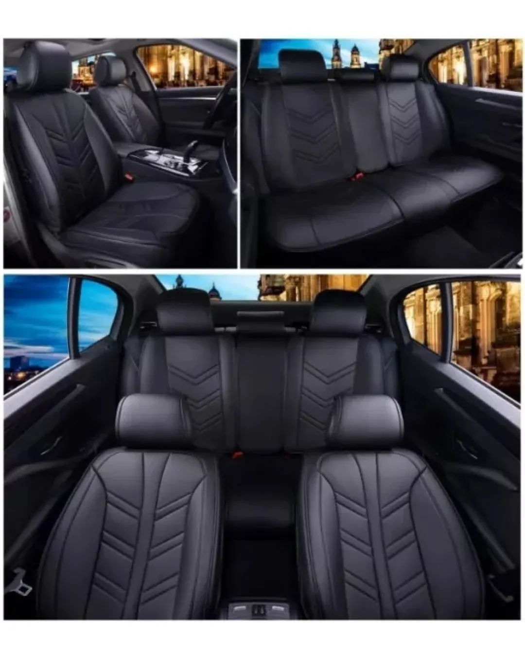 Изработени от висококачествена PU изкуствена кожа и мека пяна, осигуряват удобно чувство за сядане. Ръчно шити. Универсален дизайн, подходящ за всички автомобили. Дизайн, съвместим с airbag - въздушни възглавници. Устойчивост на износване, добър водоустойчив ефект и силна огнезащитна способност. Лесна инсталация. Цялостен дизайн, покрива предната и задната част на седалката. Пакет, включващ: 5 части