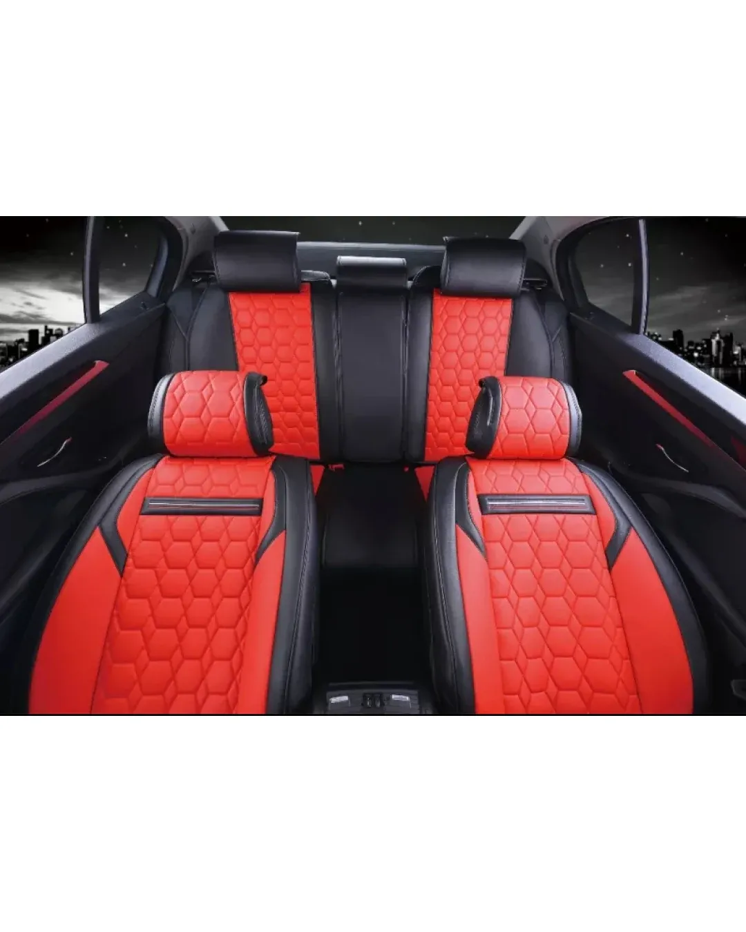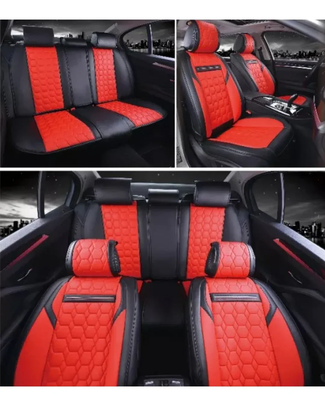 Пълен Комплект Универсална Тапицерия, Калъфи За Автомобилни Седалки Лукс Еко Кожа Червено и Черно TAP887