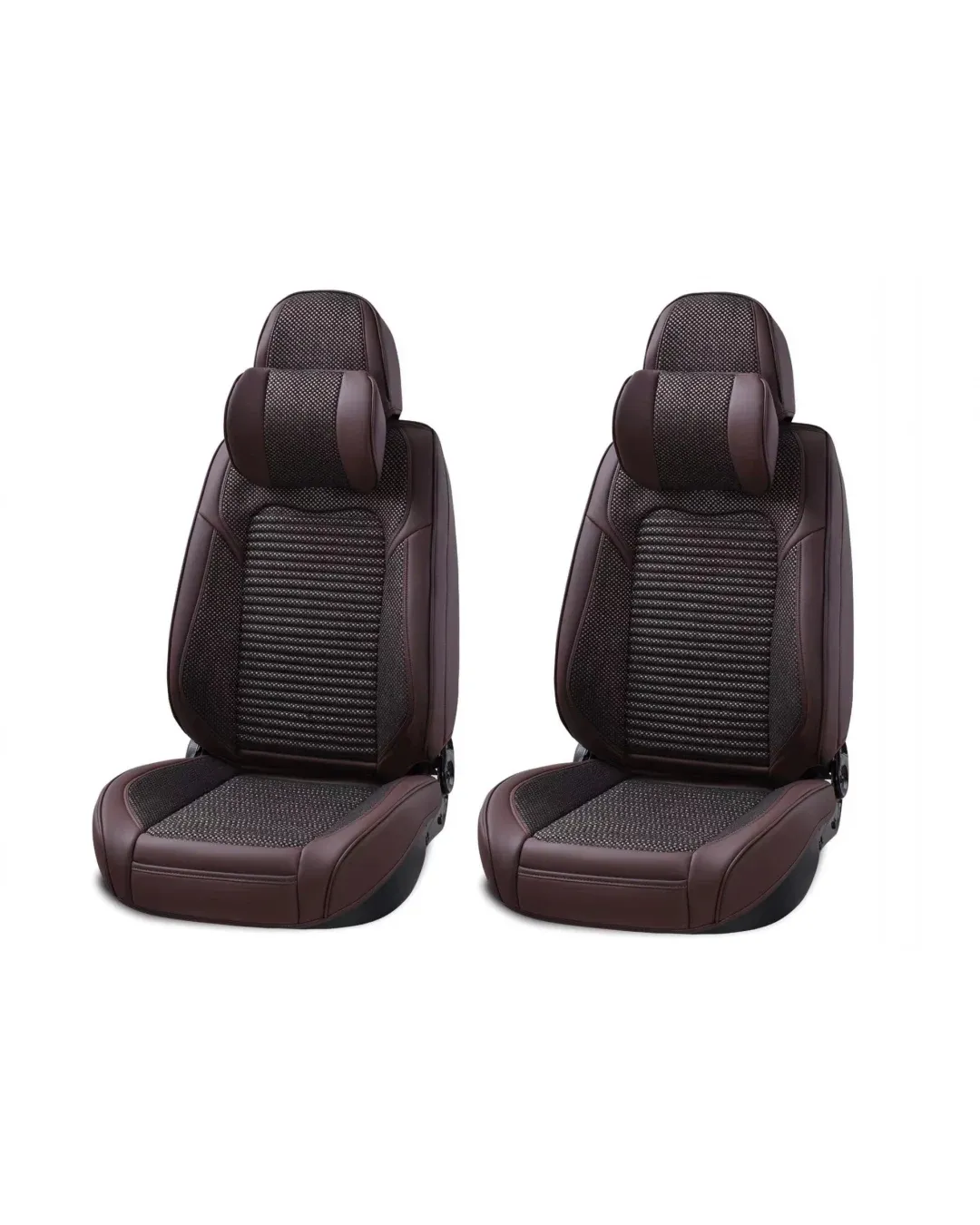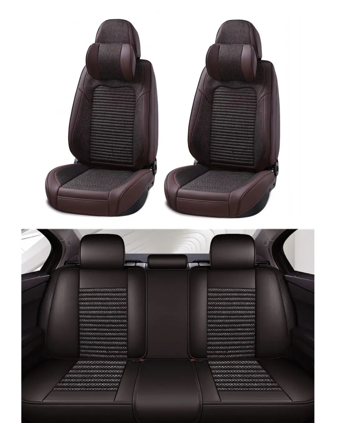 Пълен Комплект Универсална Тапицерия, Калъфи За Автомобилни Седалки Лукс Еко Кожа и Висококачествен Текстил в Кафаво с възглавнички