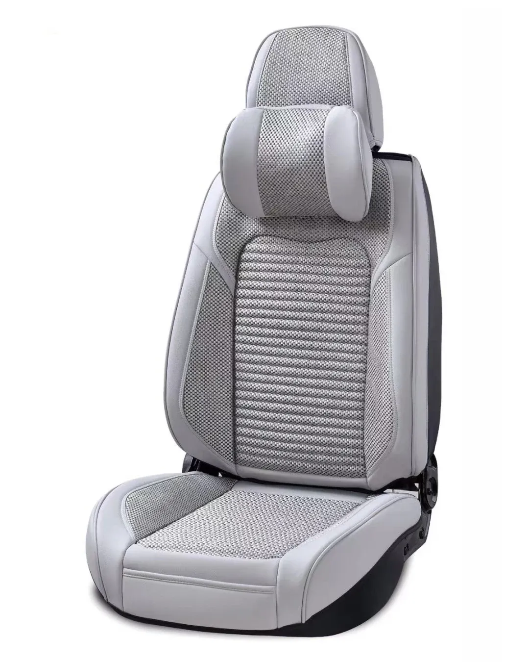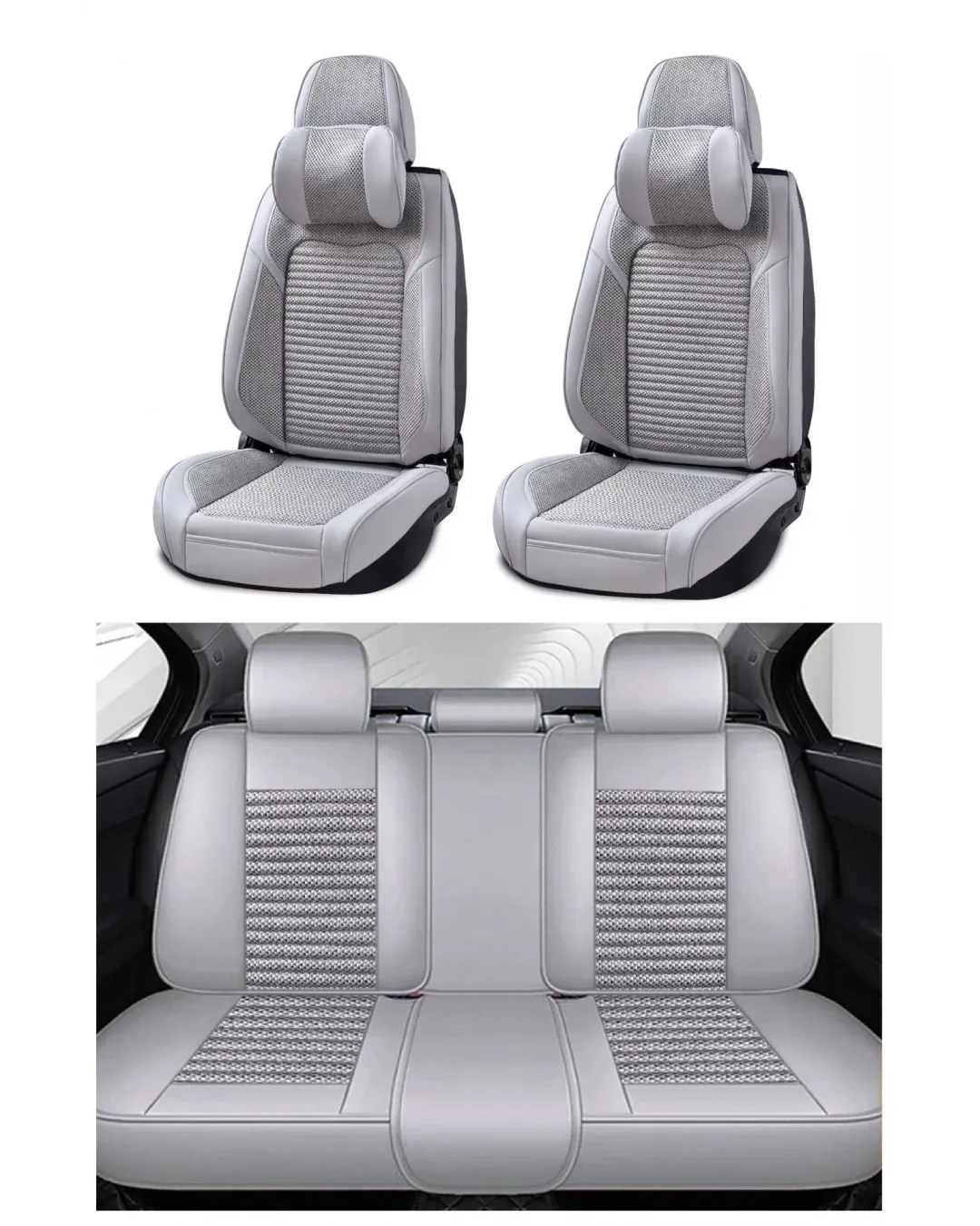 Пълен Комплект Универсална Тапицерия, Калъфи За Автомобилни Седалки Лукс Еко Кожа и Висококачествен Текстил в Светло Сиво с възглавнички