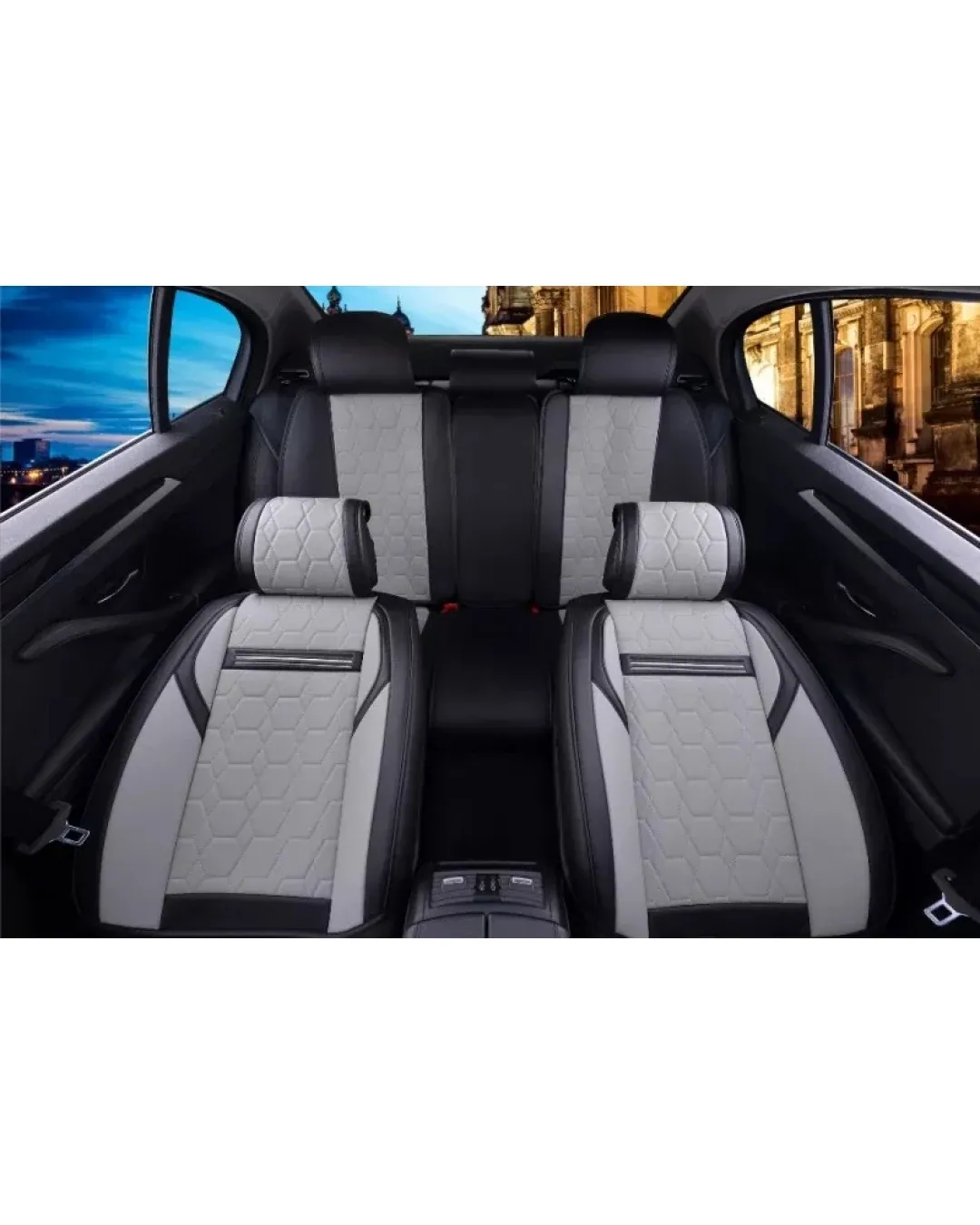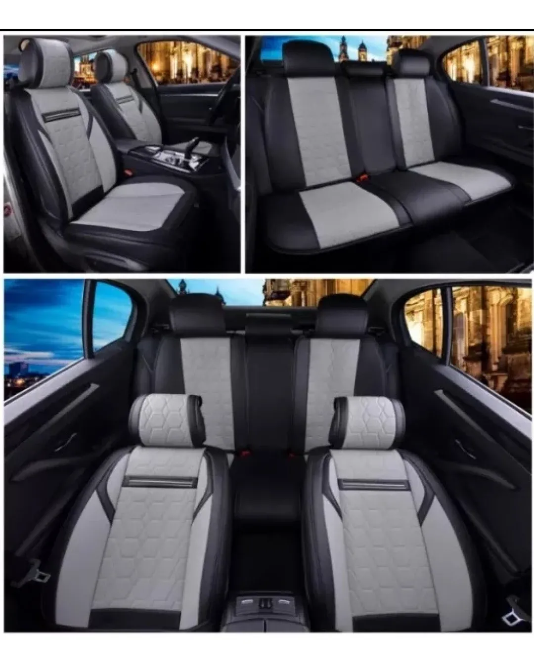 Лукс Комплект Сива Кожена универсална тапицерия / калъфи за седалки