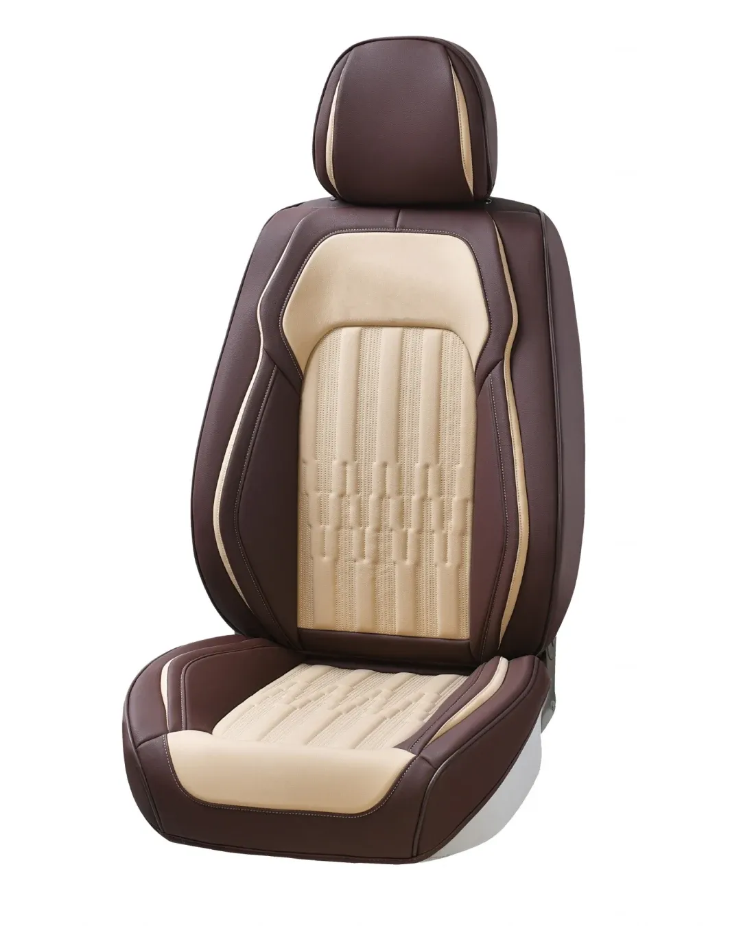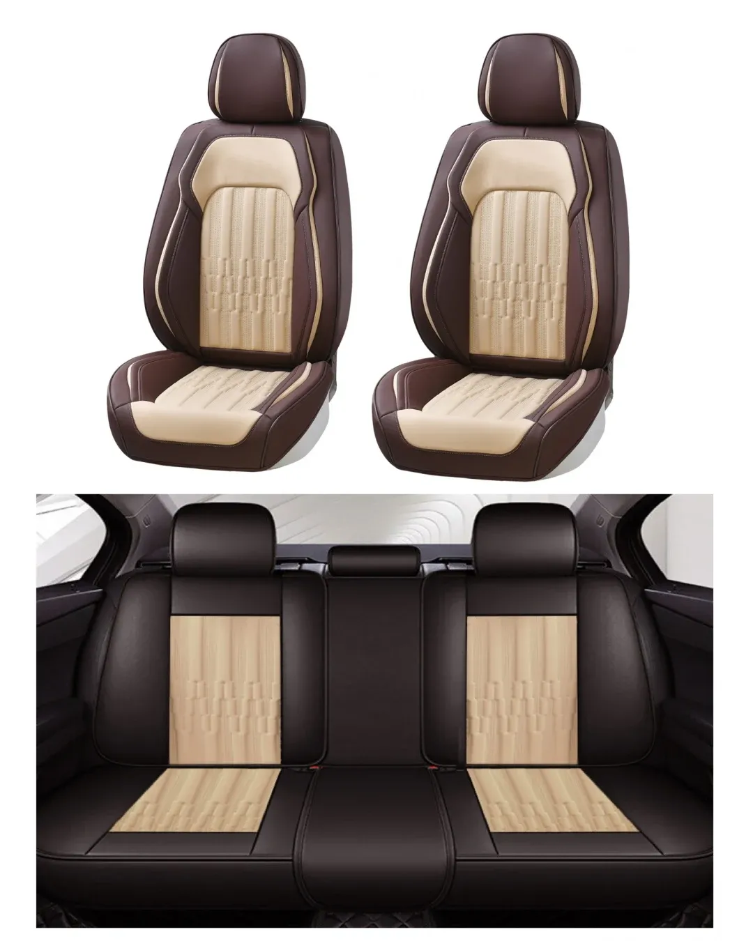 Пълен Комплект Универсална Тапицерия, Калъфи За Автомобилни Седалки Лукс Еко Кожа в Бежово и Кафяво (цвят Кафе)