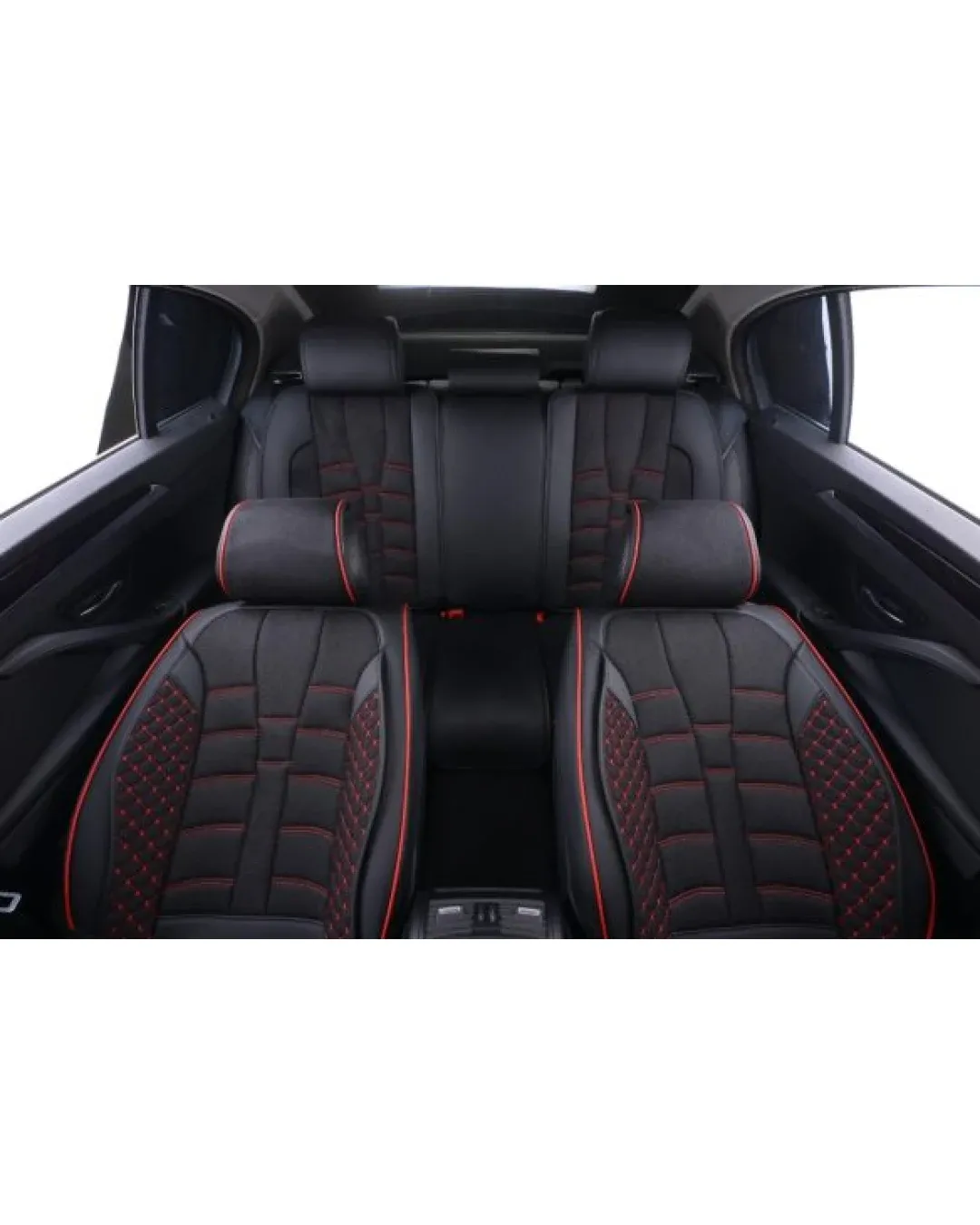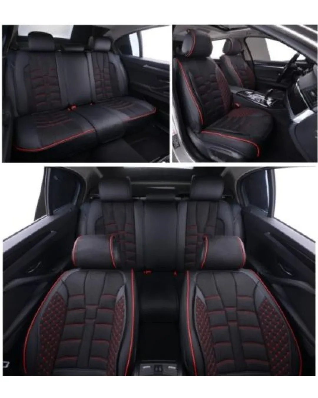 Пълен Комплект Универсална Тапицерия, Калъфи За Автомобилни Седалки Лукс Еко Кожа в Черно с червен конец, шев TAP891