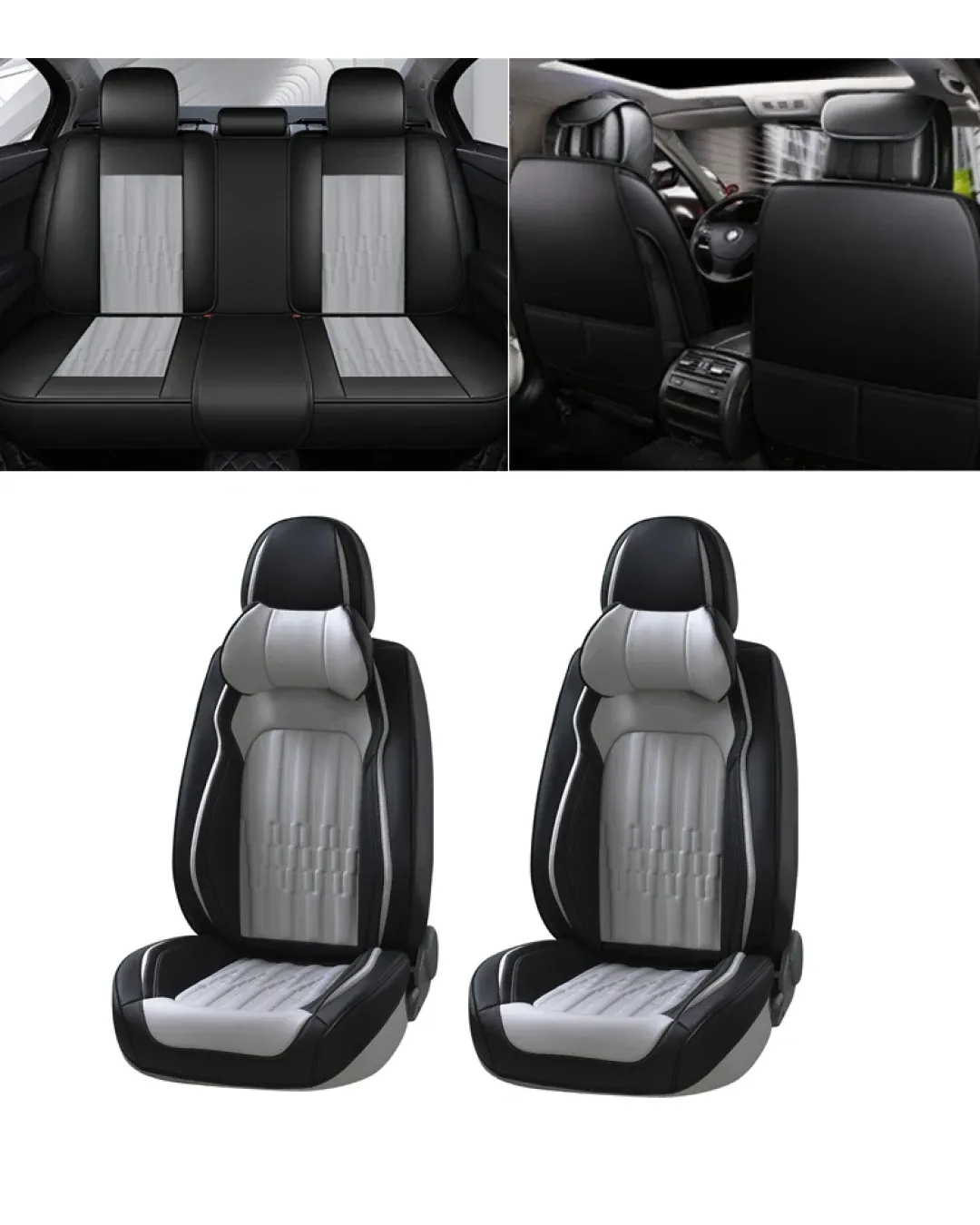 Пълен Комплект Универсална Тапицерия, Калъфи За Автомобилни Седалки Лукс Еко Кожа в Черно със Сиво TAP881