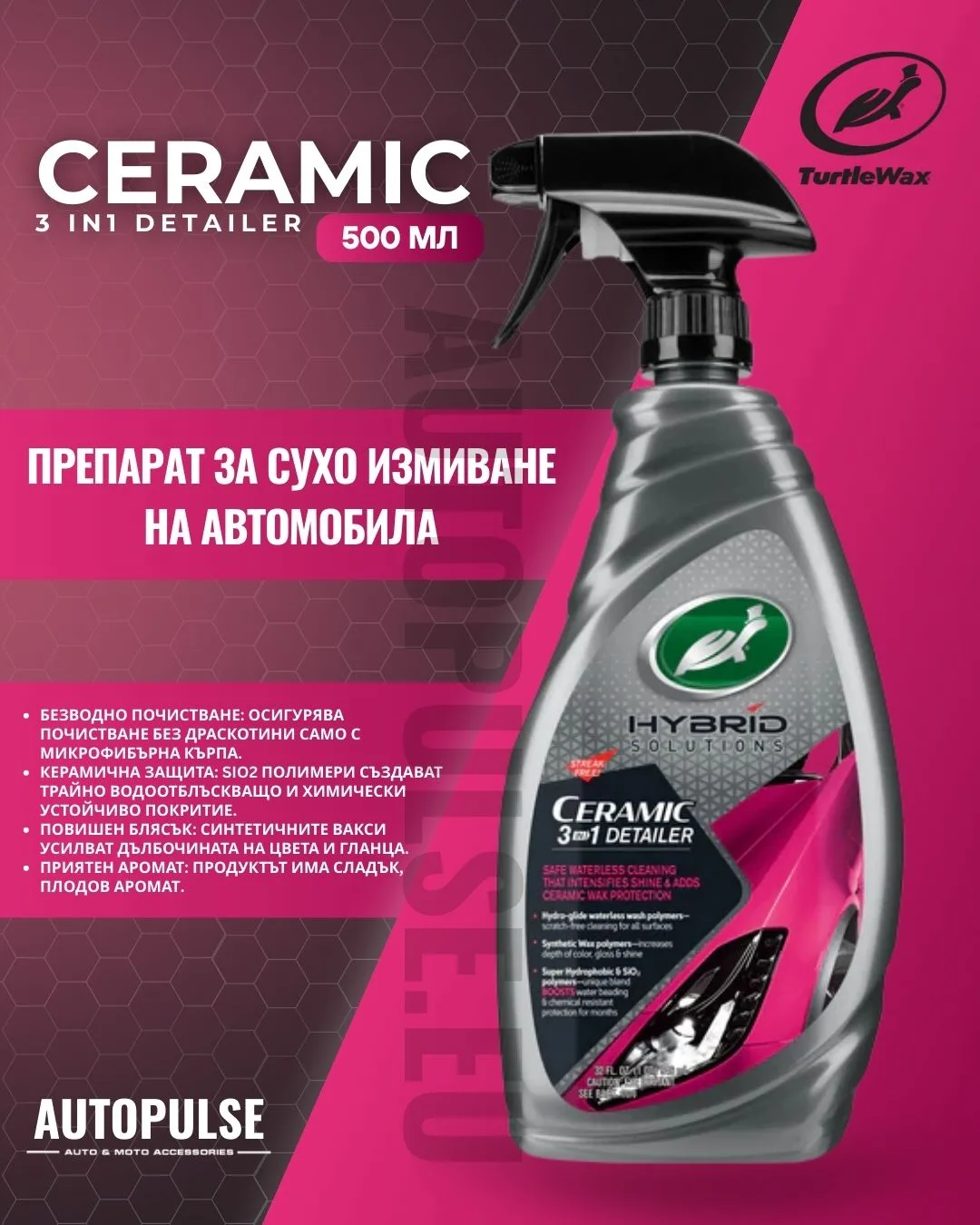 - Продукта: Turtle Wax Hybrid Solutions Ceramic 3-in-1 Detailer