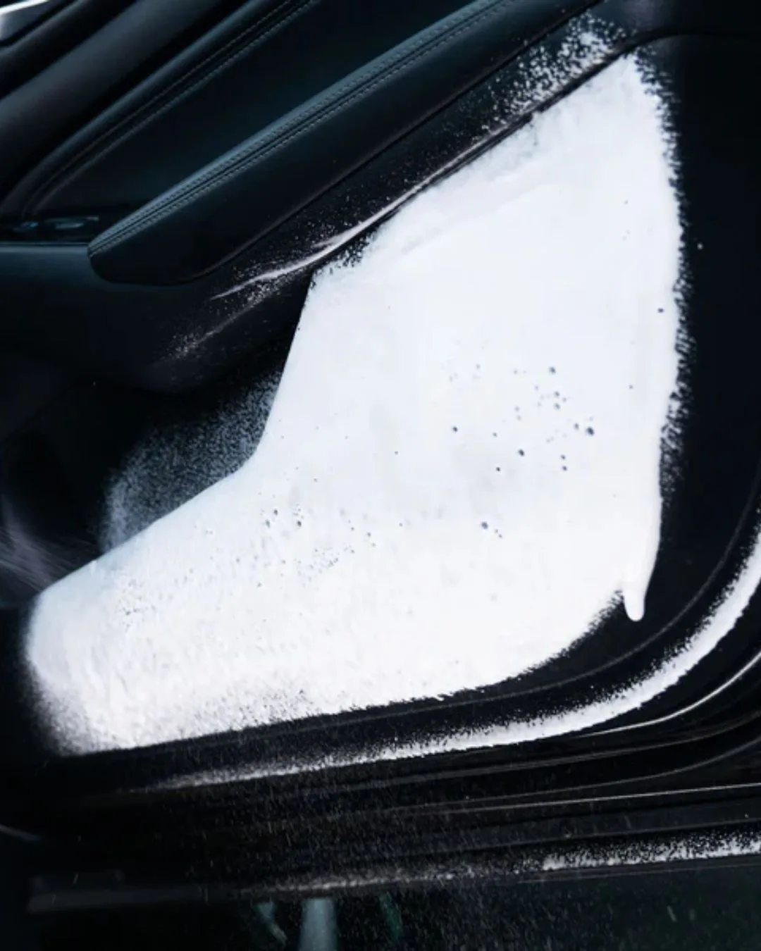 - Суха Пяна: Активната суха пяна не прониква дълбоко в дунапрена на седалките, което гарантира по-бързо съхнене и предотвратява влага и мухъл.